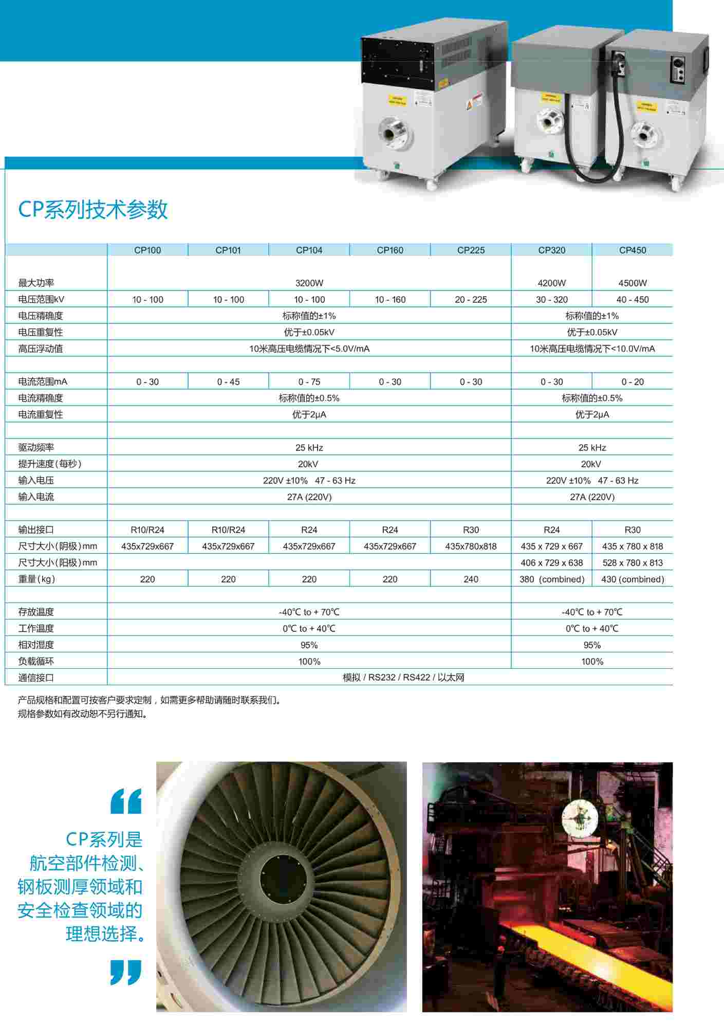 CP系列射線機(jī)主要應(yīng)用在同時(shí)滿足小焦點(diǎn)X射線實(shí)時(shí)成像和需要高功率大焦點(diǎn)X射線的高密度材料檢測(cè)。CP系列射線機(jī)可應(yīng)用在要求較高的航空膠片射線檢測(cè)領(lǐng)域和苛刻的、周期較長(zhǎng)的鋼板厚度測(cè)量技術(shù)領(lǐng)域。由于CP系列精確度和可靠性較高,該產(chǎn)品也被廣泛應(yīng)用在安保和醫(yī)療射線方面。