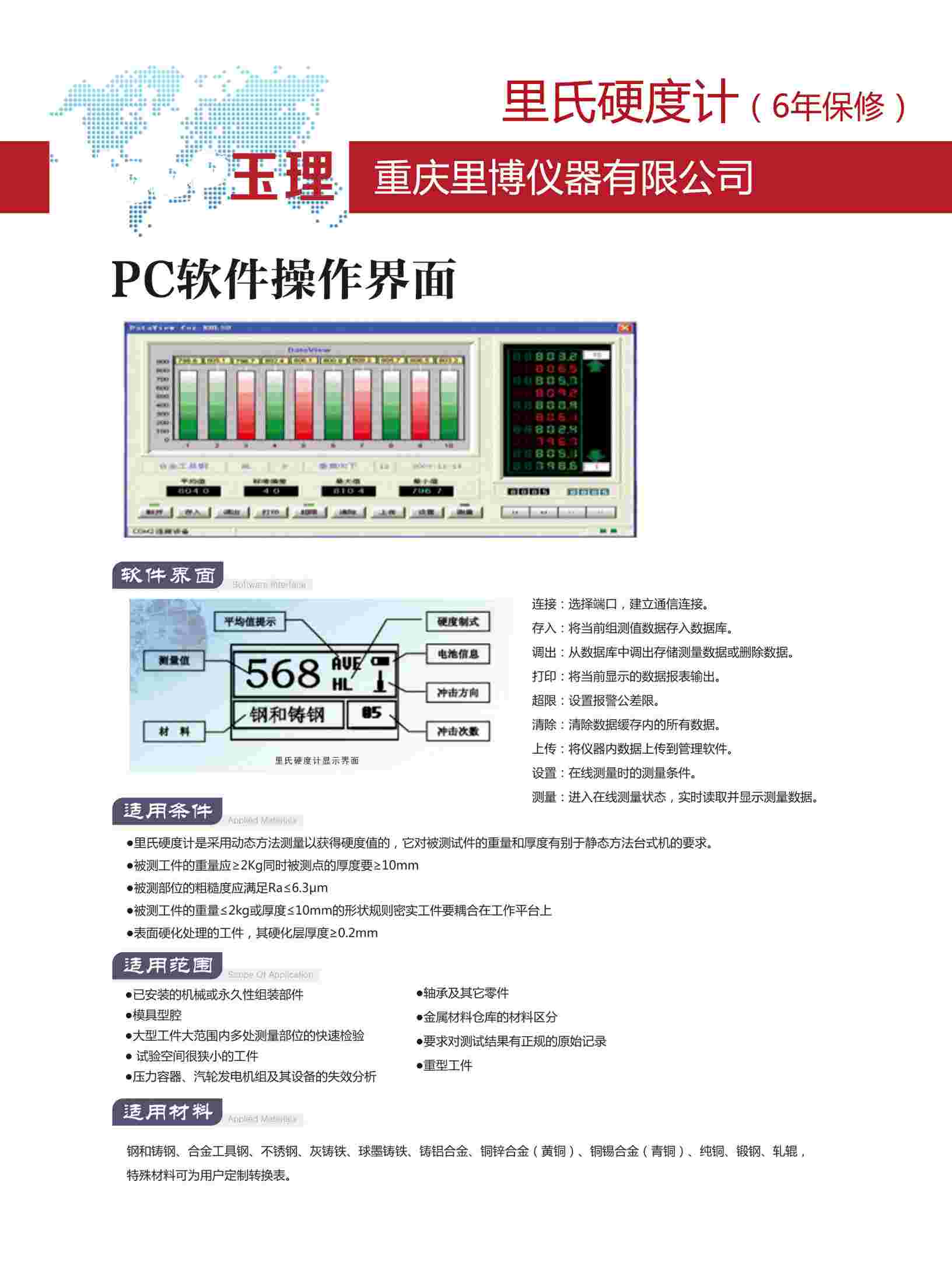 可存儲(chǔ)最大600組(沖擊次數(shù)30~1)硬度測(cè)量數(shù)據(jù)。每組數(shù)據(jù)包括單次測(cè)量值、平均值、測(cè)量日期、沖擊方向、次數(shù)、材料、硬度制等信息。