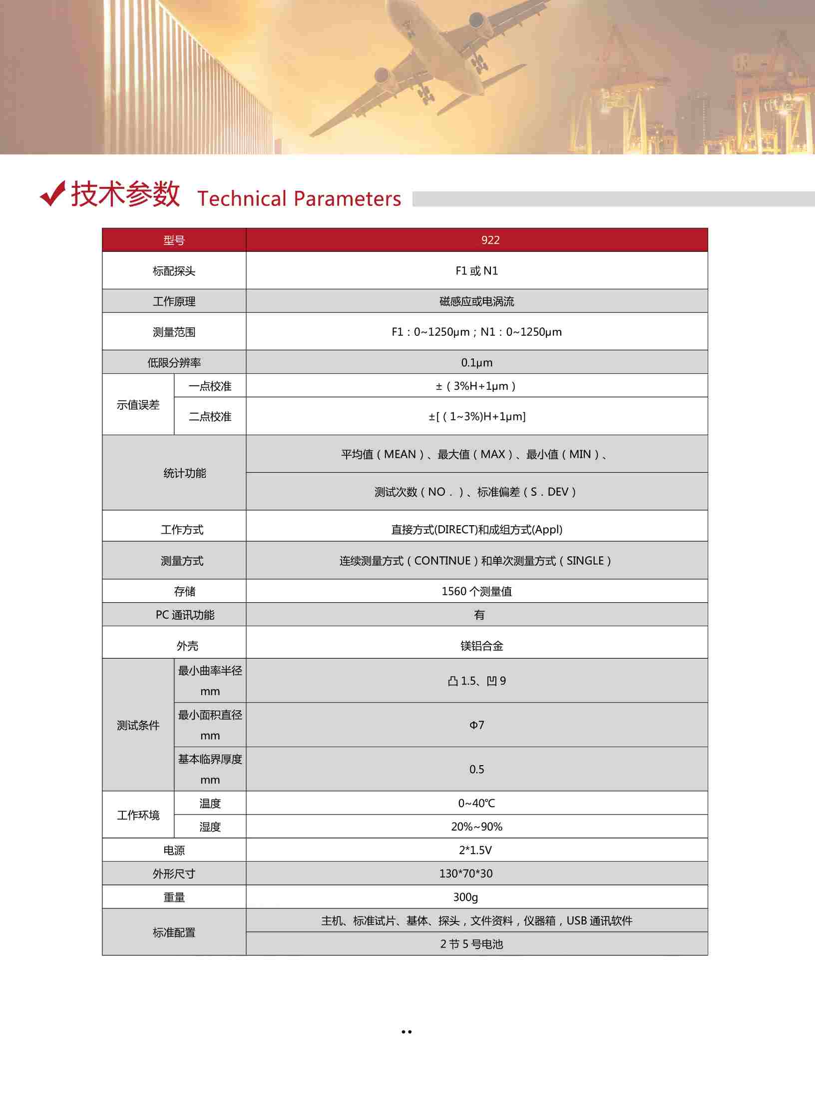 主機、標準試片、基體、2節(jié)5號電池,文件資料,儀器箱,USB通訊軟件 |