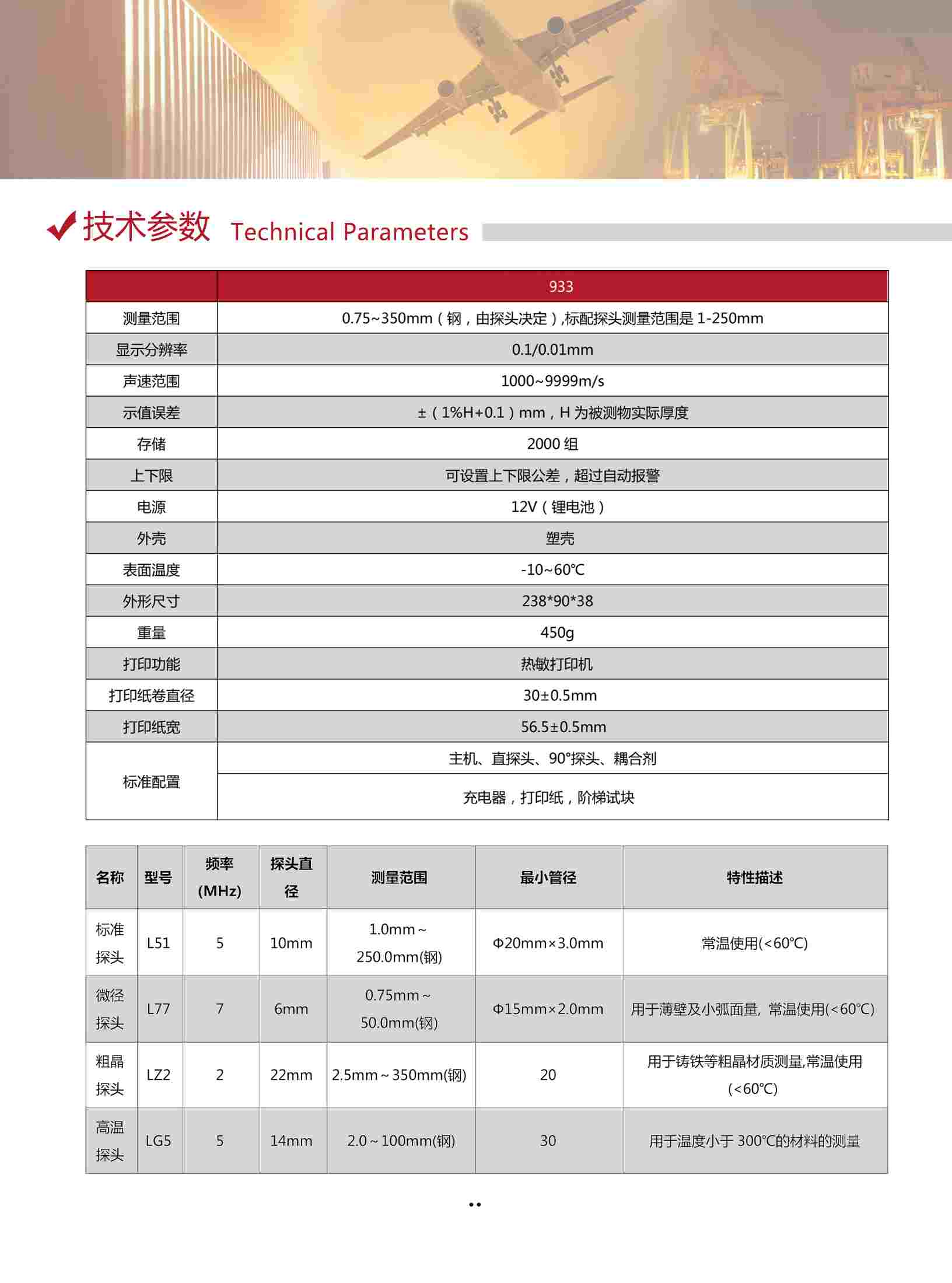 0.75~350mm(鋼,由探頭決定),標(biāo)配探頭測(cè)量范圍是1-250mm