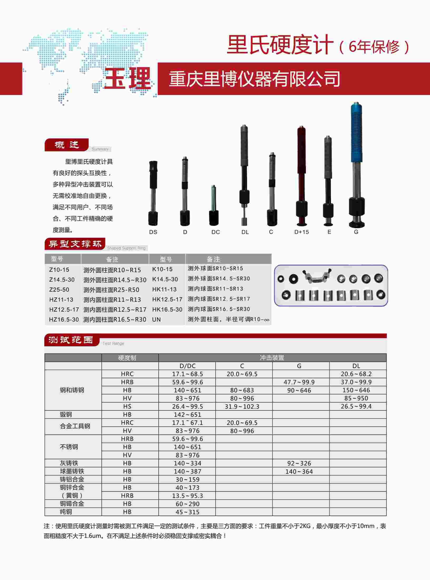 注:使用里氏硬度計測量時需被測工件適合測試條件,三方面的要求:工件重量不小于2KG,最小厚度不小于10mm,表面粗糙度不大于1.6um。在不適合上述條件時須穩(wěn)固支撐或密實(shí)耦合!