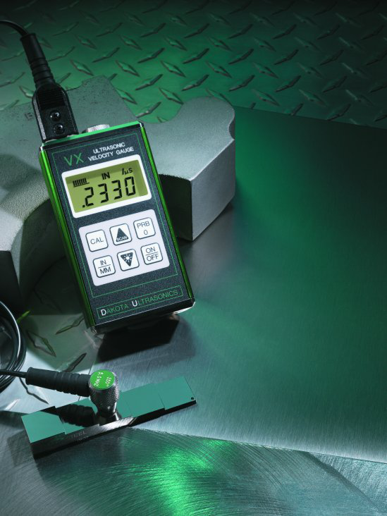 DAKOTA公司VX是一種手持式超聲波聲速測定儀(球化率儀)。當被測定的材料是鑄件、合金或者塑料時,VX就會測出聲波穿過它們時的速度。因此,可得出所測材料內(nèi)部組織是否緊密有無缺陷。如可預先將球墨鑄鐵不同球化率百分比(通過金相法)試樣做出,分別測量其不同的聲速值,對鑄件進行批量檢查。