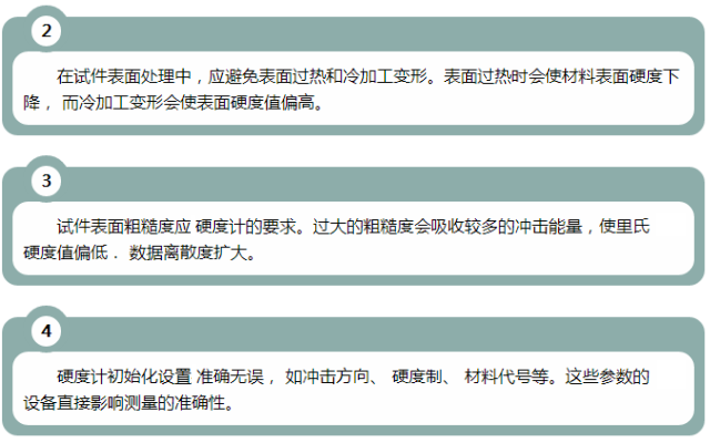 檢測條件:使用里氏硬度計測量時需被測工件達到測試條件,主要是三方面的要求:工件重量不小于2KG,小厚度不小于10mm,表面粗糙度不小于1.6um。在不達到上述條件時穩(wěn)固支撐或密實耦合!