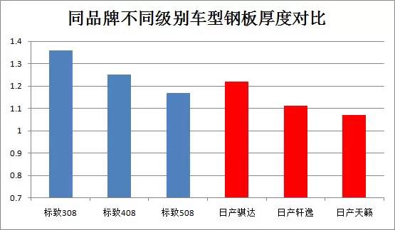 文章開頭提到的一個(gè)普遍觀點(diǎn)認(rèn)為,日系車鋼板較薄而德系美系車鋼板相對較厚,那么實(shí)際測試結(jié)果是否如此呢?