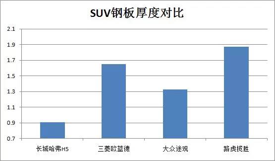 不同的車型有著各自不同的用途和設(shè)計(jì)理念。目前大行其道的城市型SUV出于成熟車型平臺,單從檢測數(shù)據(jù)看,其基本保持了與母平臺車型較相同的鋼板厚度水平,且在剛性上略有進(jìn)步;而對于像路虎這類的越野車來說,比普通城市SUV需要較厚的鋼板做防護(hù)。因此路虎品牌也成了這次檢測中,平均鋼板厚度有點(diǎn)厚的品牌,旗艦車型攬勝也是這次檢測中鋼板厚度有點(diǎn)厚的車型。