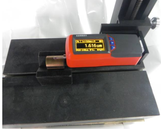 銅套、套類工件在使用過程中內(nèi)壁以及外壁需要與相配的部件產(chǎn)生潤滑摩擦,所以對粗糙度也提出了要求。這類小套件由于體積較小、重量也比較輕、正常擺放測量工件會產(chǎn)生位移,無法測量。里博分體粗糙度儀、配上大理石測量平臺和V形塊,可以固定工件、檢測出實(shí)際粗糙度值。用于現(xiàn)場檢測,也可以用于實(shí)驗(yàn)室檢測。