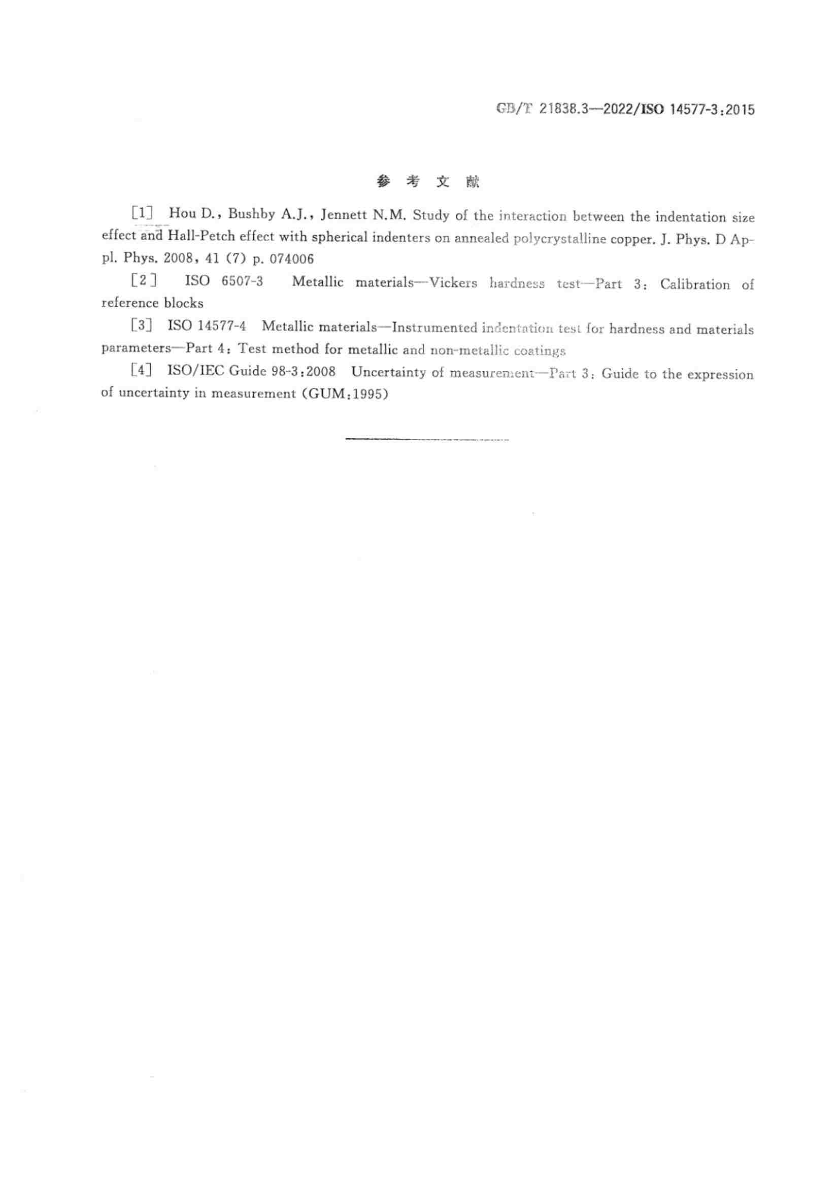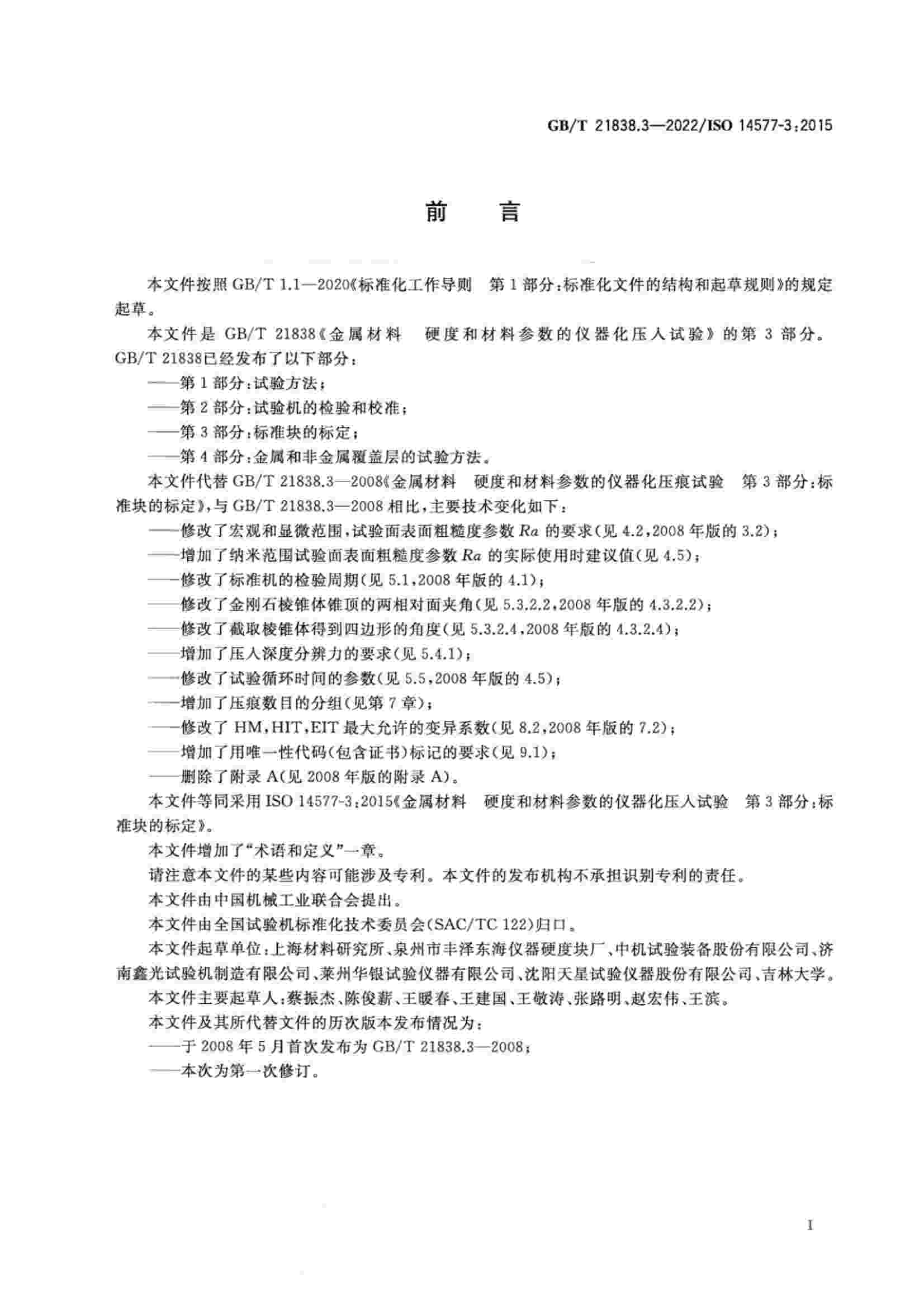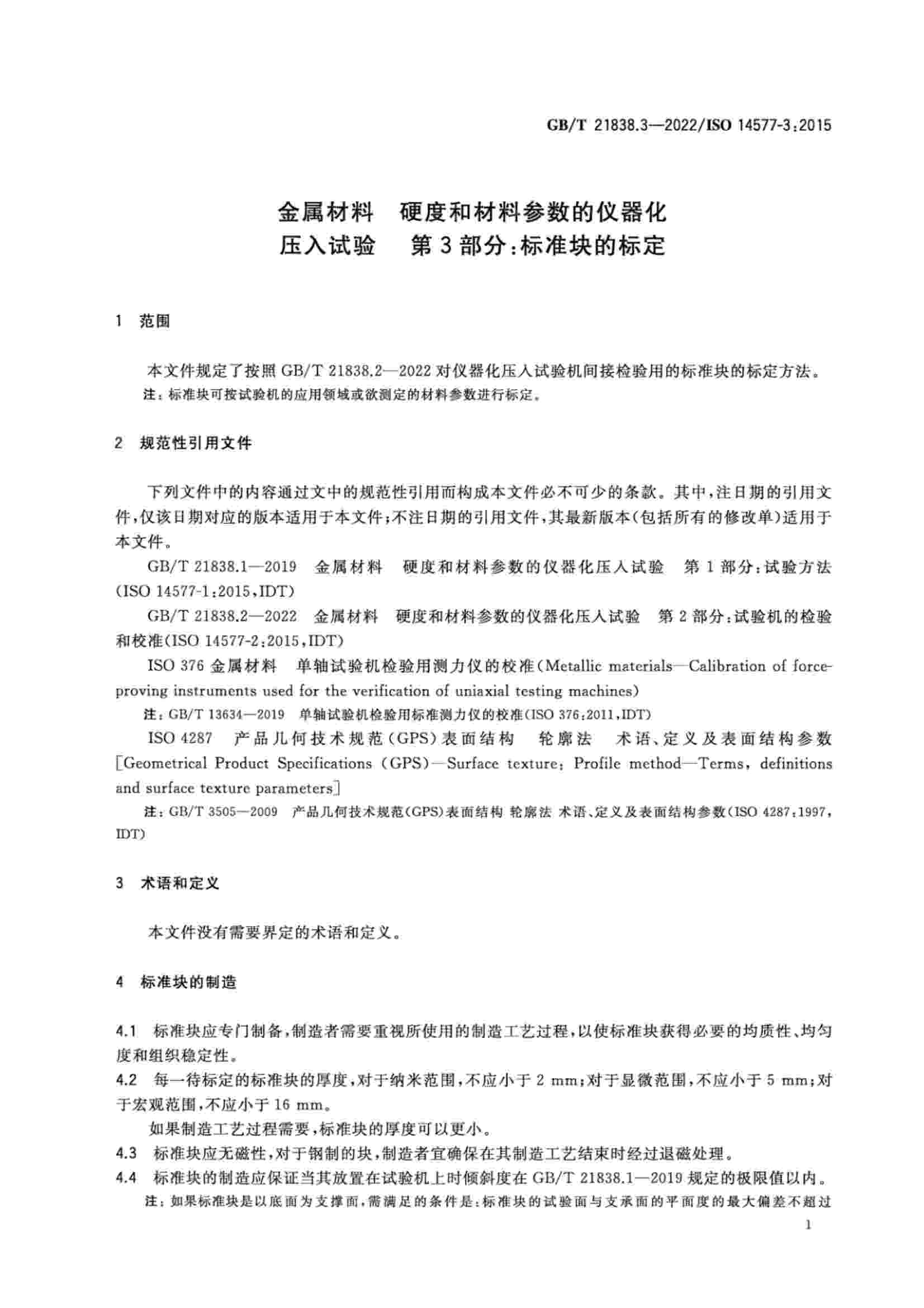 《GBT 21838.3-2022 金屬材料 硬度和材料參數(shù)的儀器化壓入試驗 第3部分:標準塊的標定》