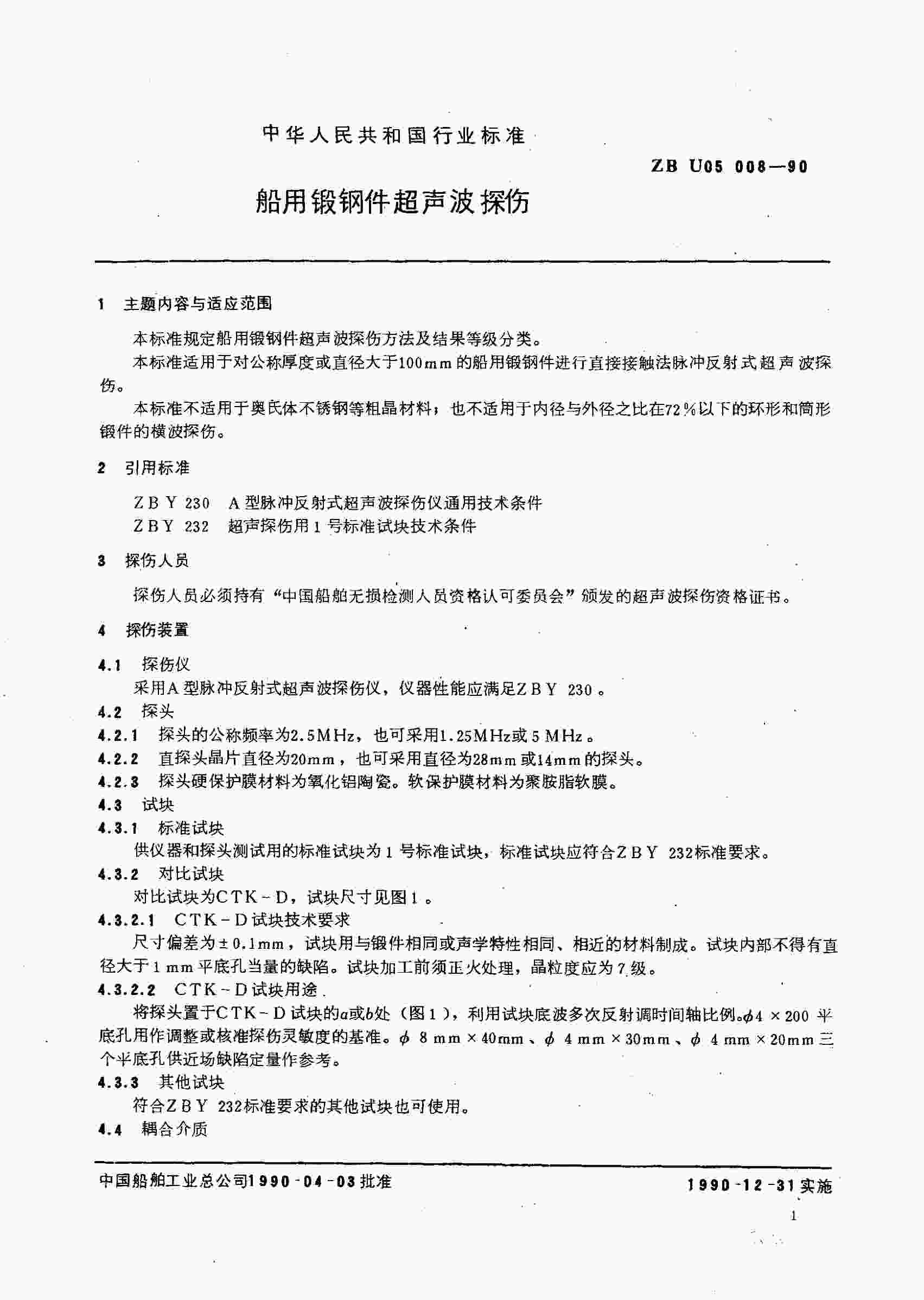 CBT3907 船舶行業(yè)標(biāo)準(zhǔn) 船用鍛鋼件超聲波探傷