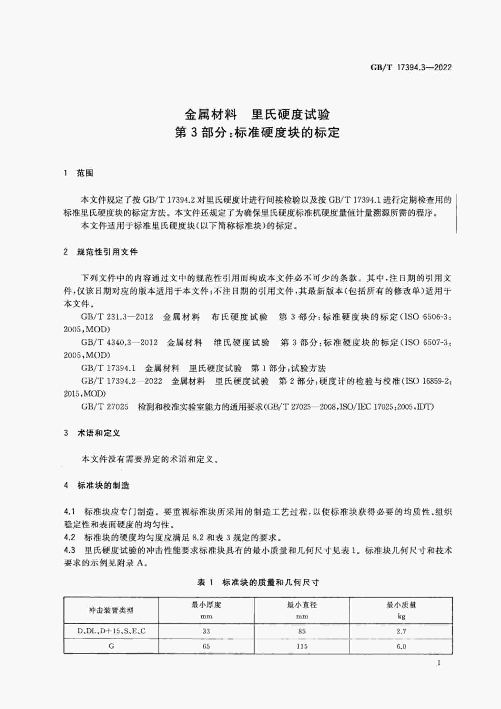 GBT 17394.3-2022 金屬材料 里氏硬度試驗(yàn) 第3部分:標(biāo)準(zhǔn)硬度塊的標(biāo)定》