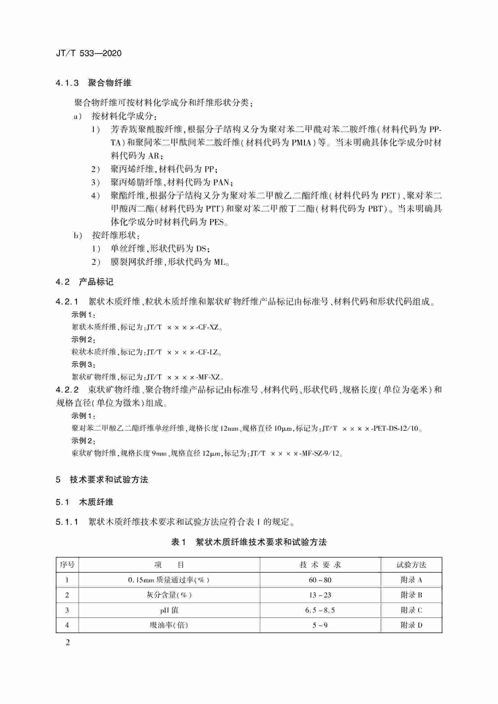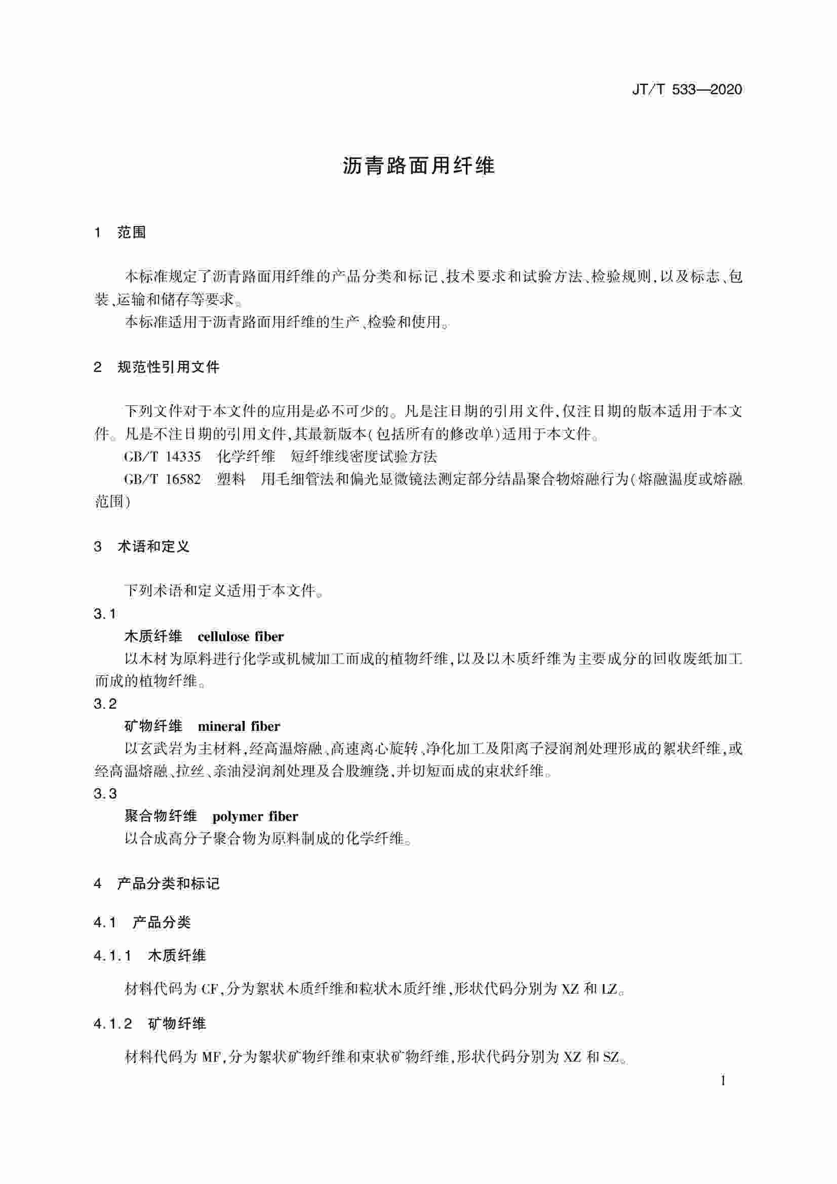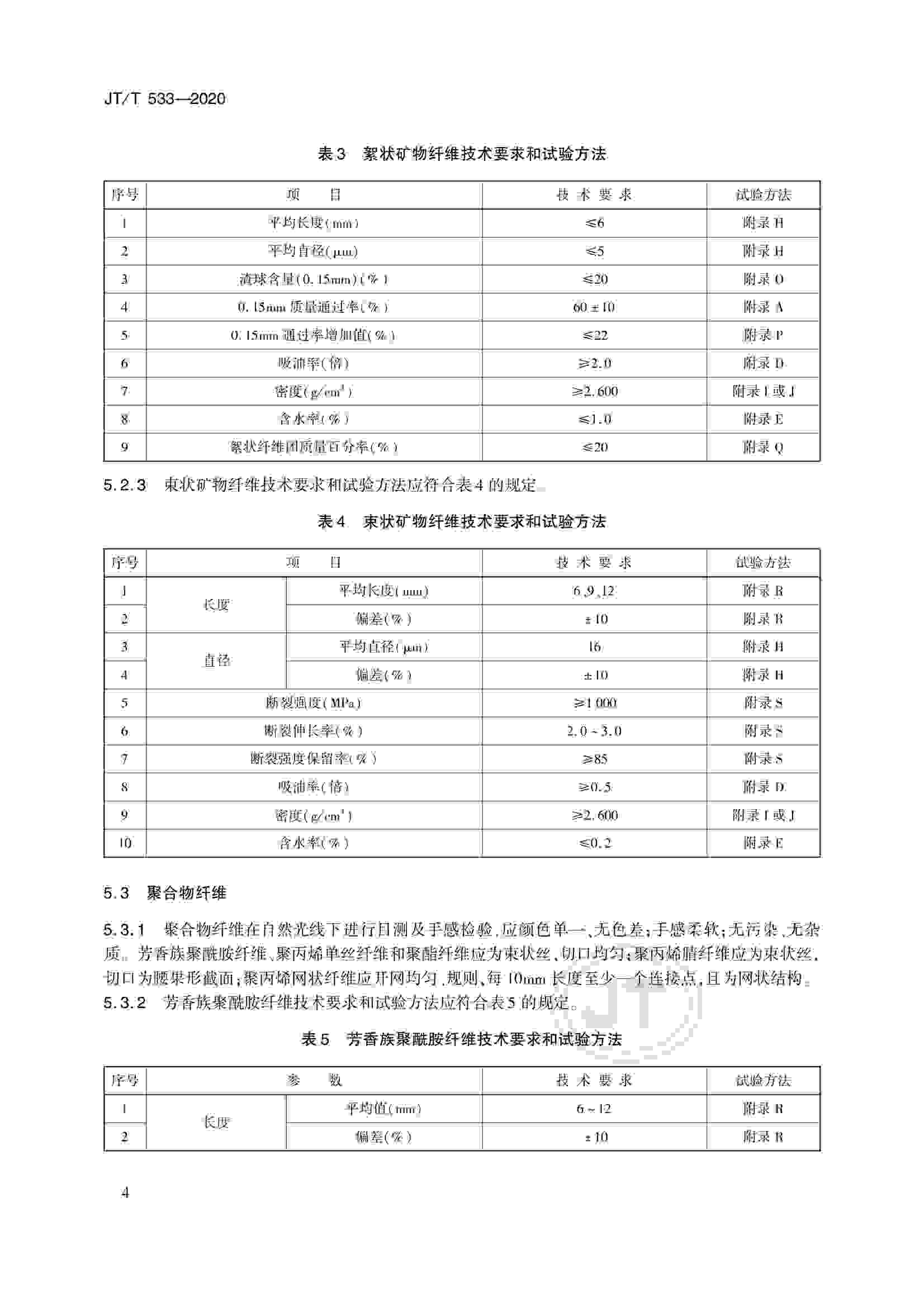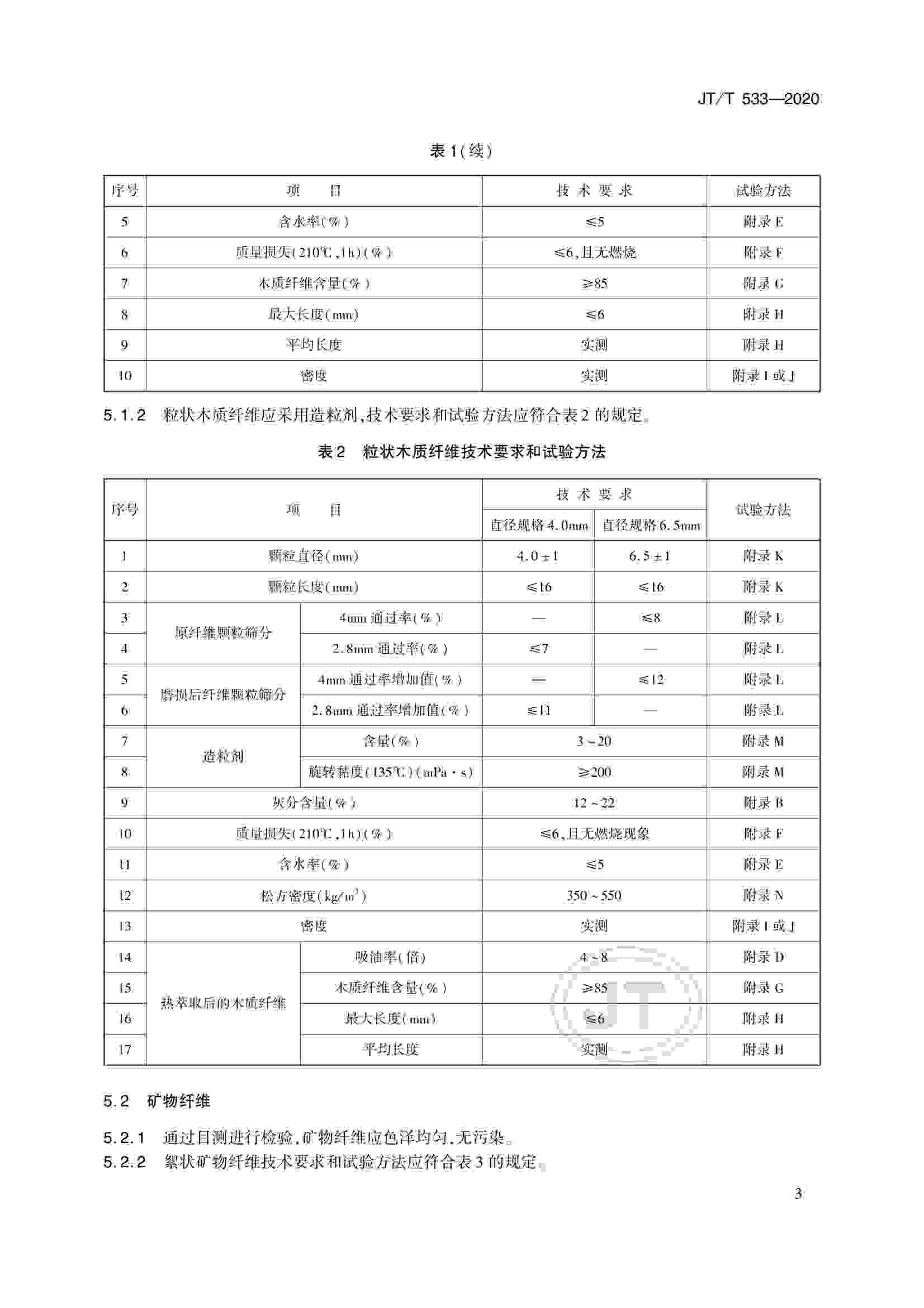 JTT 533-2020 瀝青路面用纖維