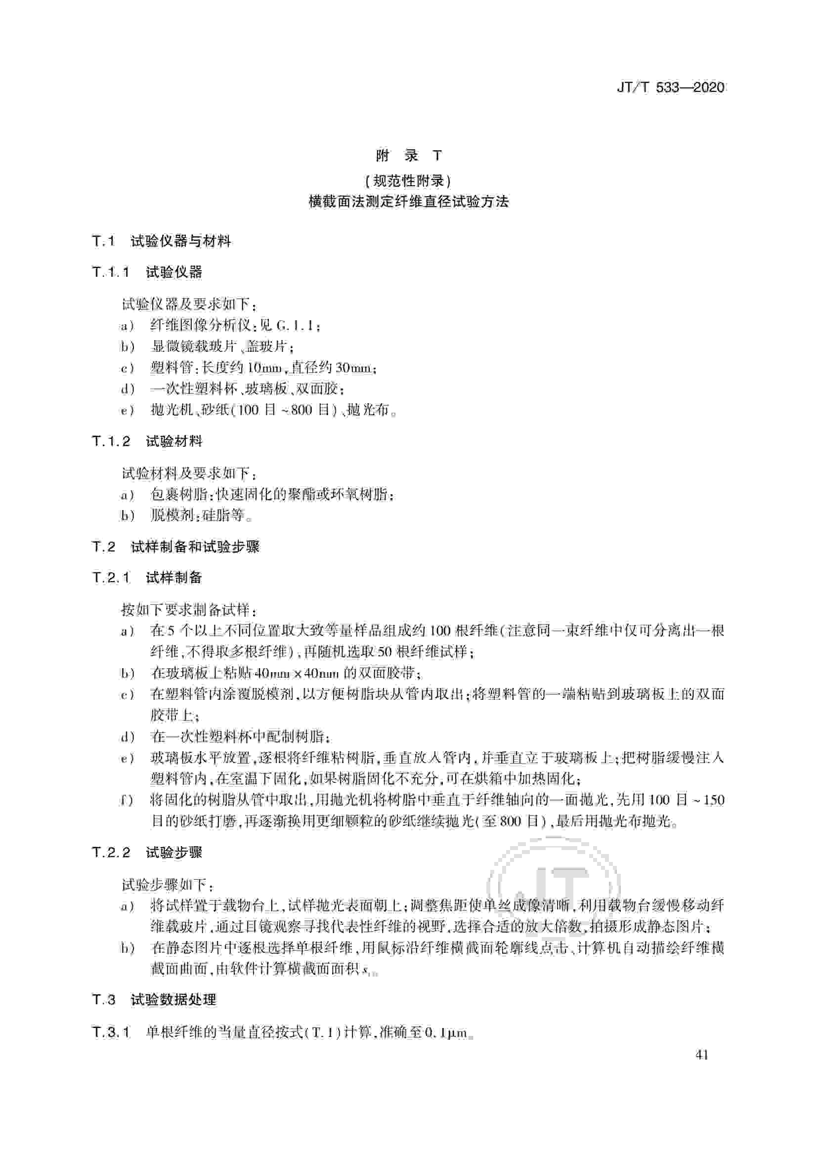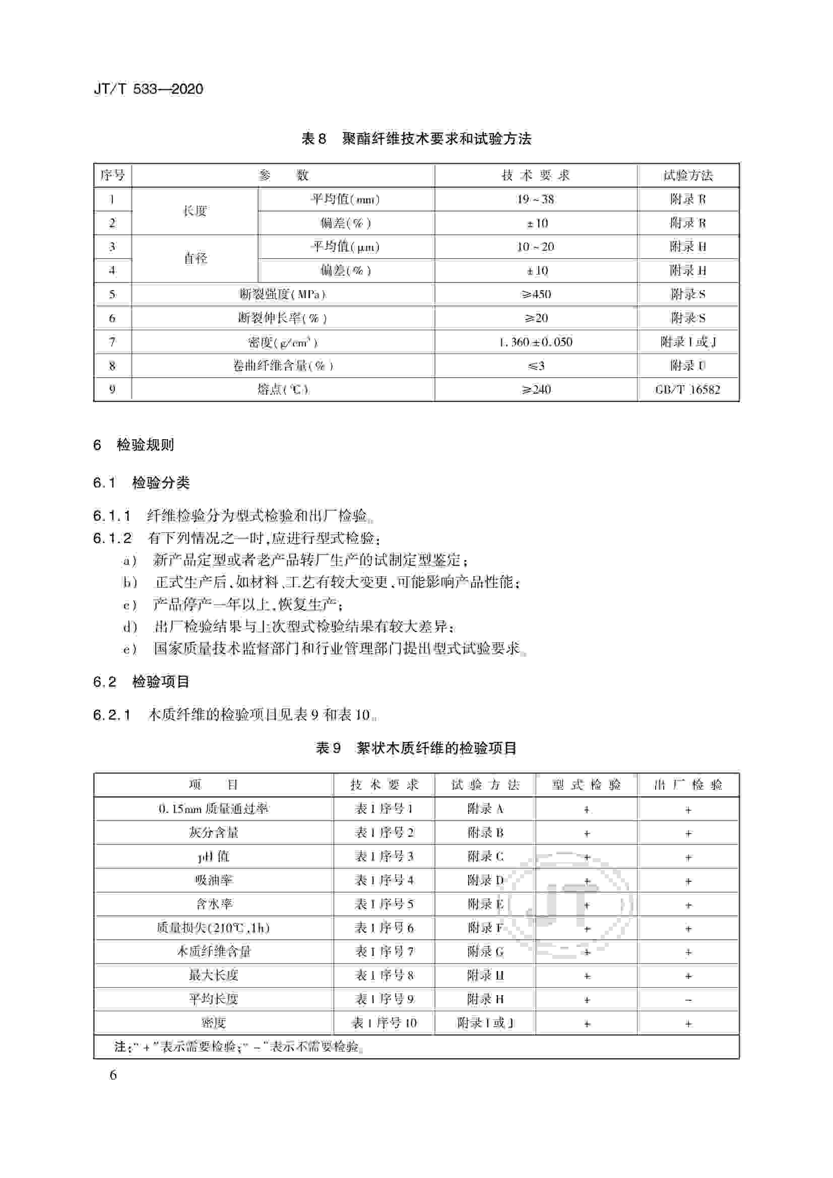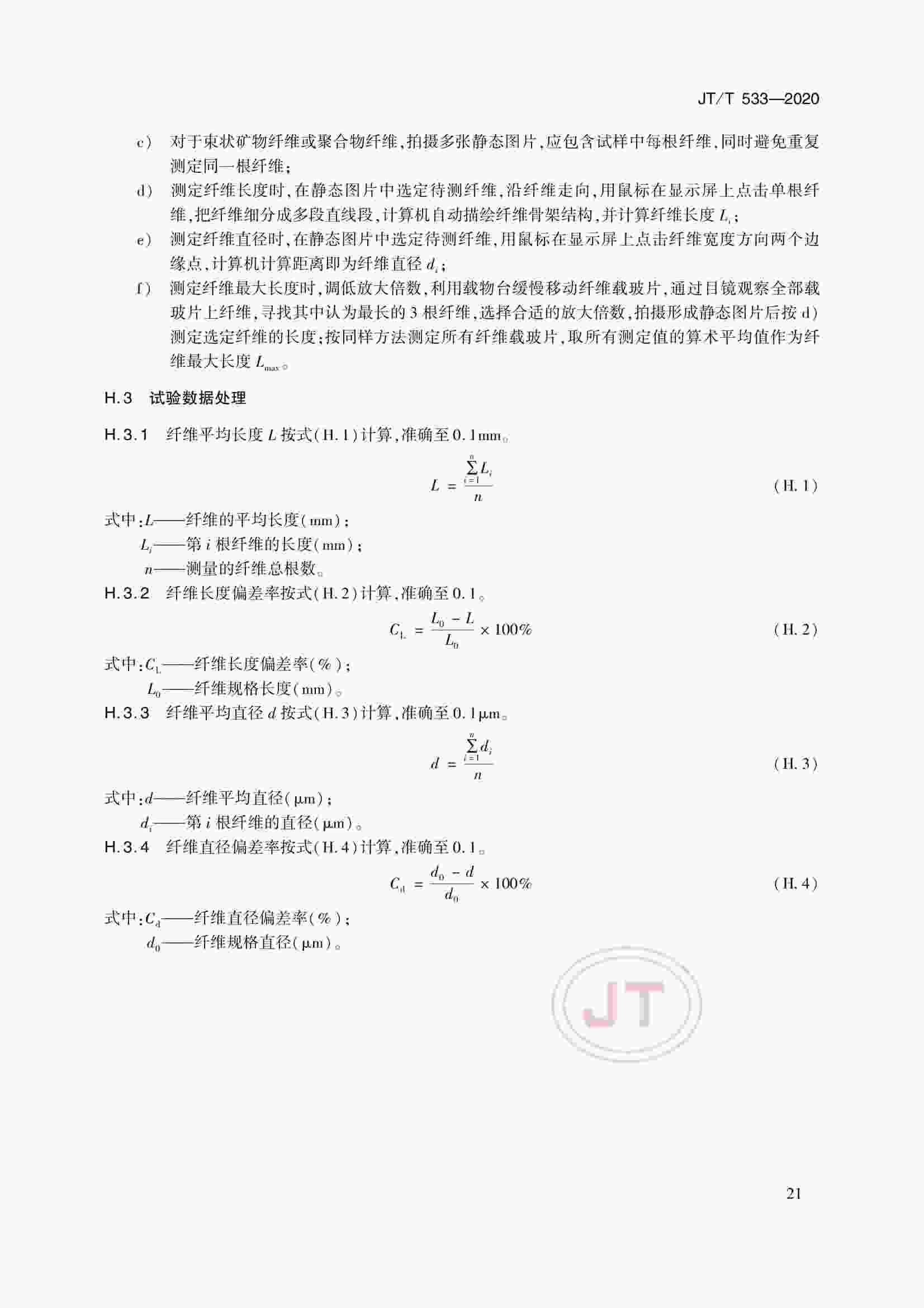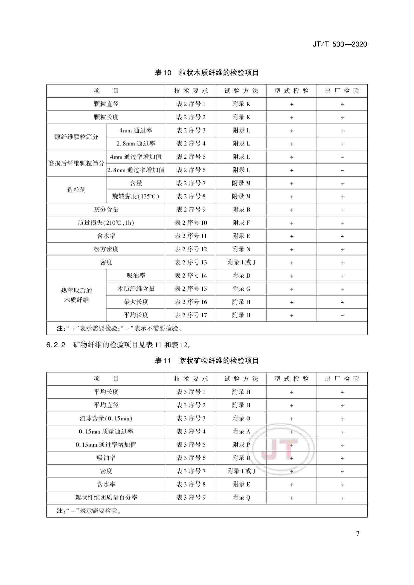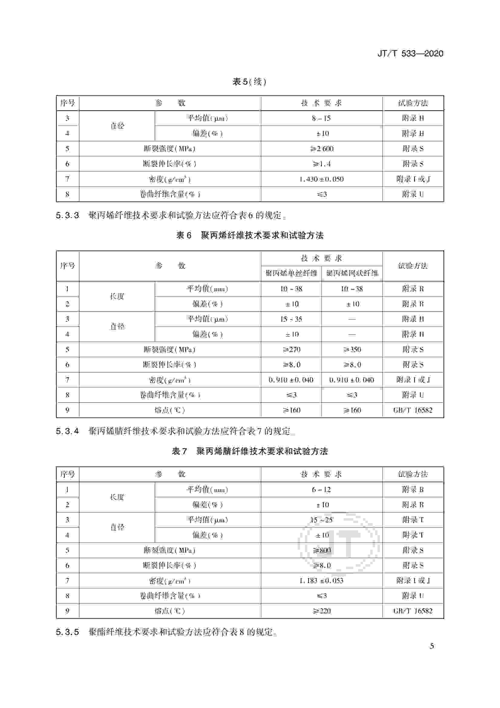 JTT 533-2020 瀝青路面用纖維