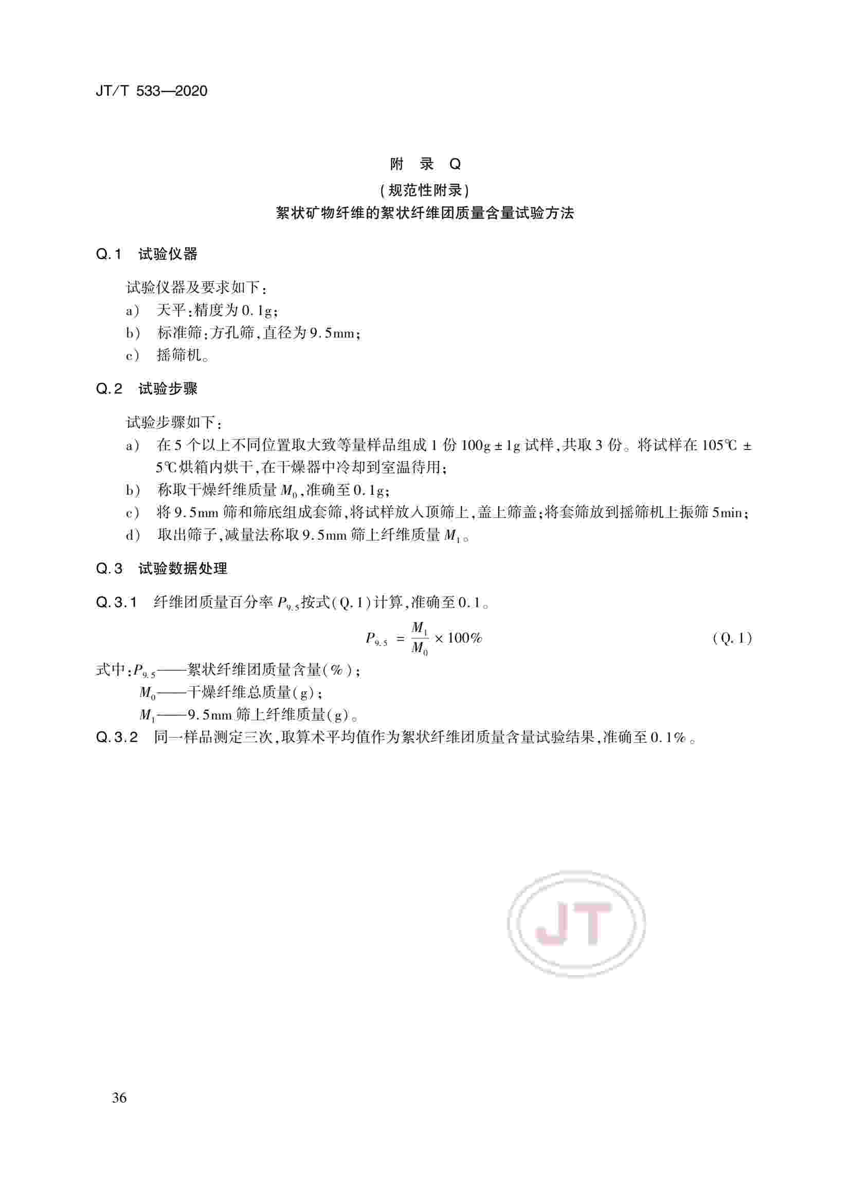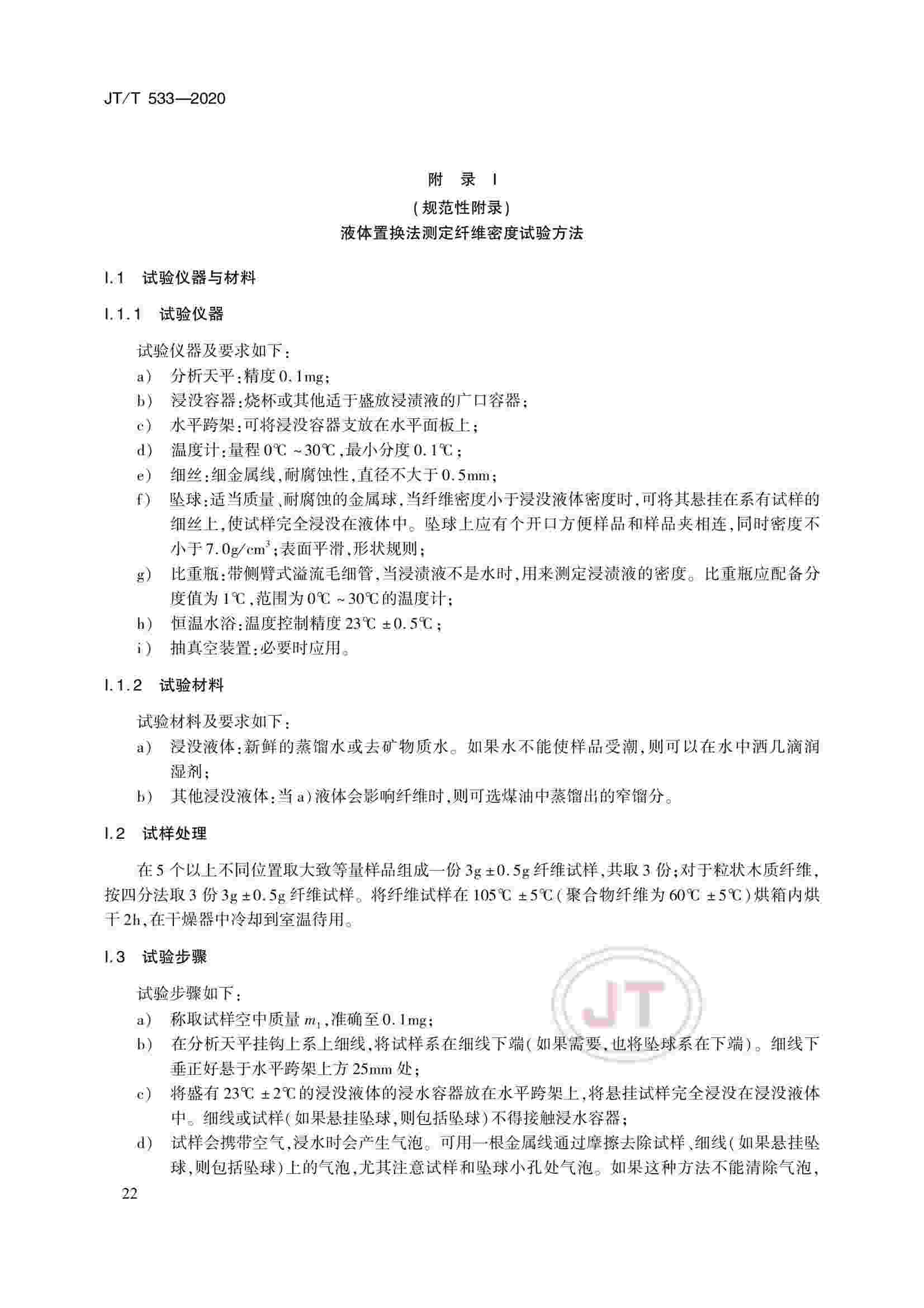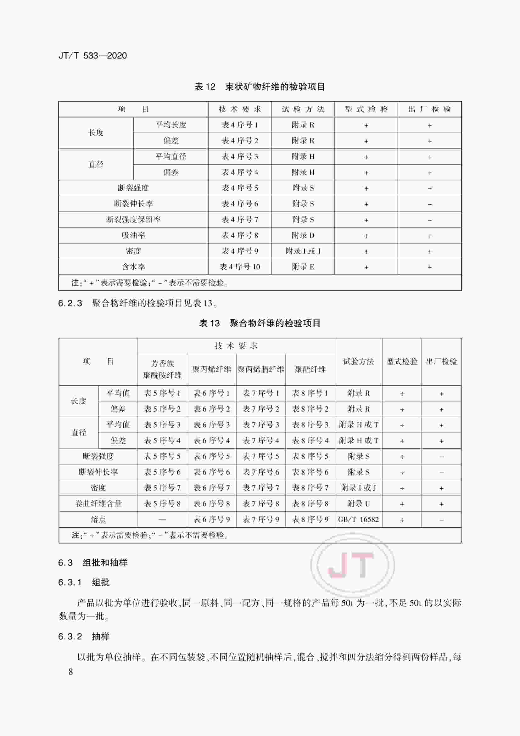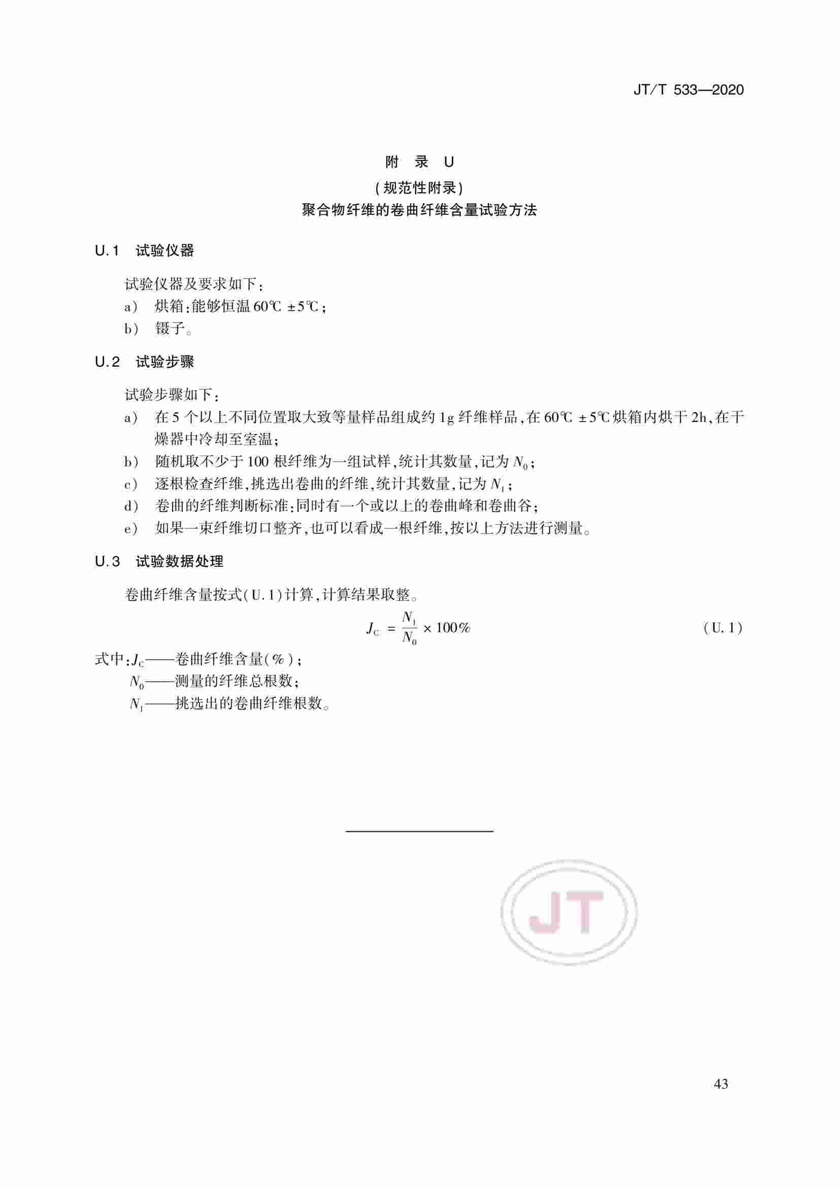 JTT 533-2020 瀝青路面用纖維