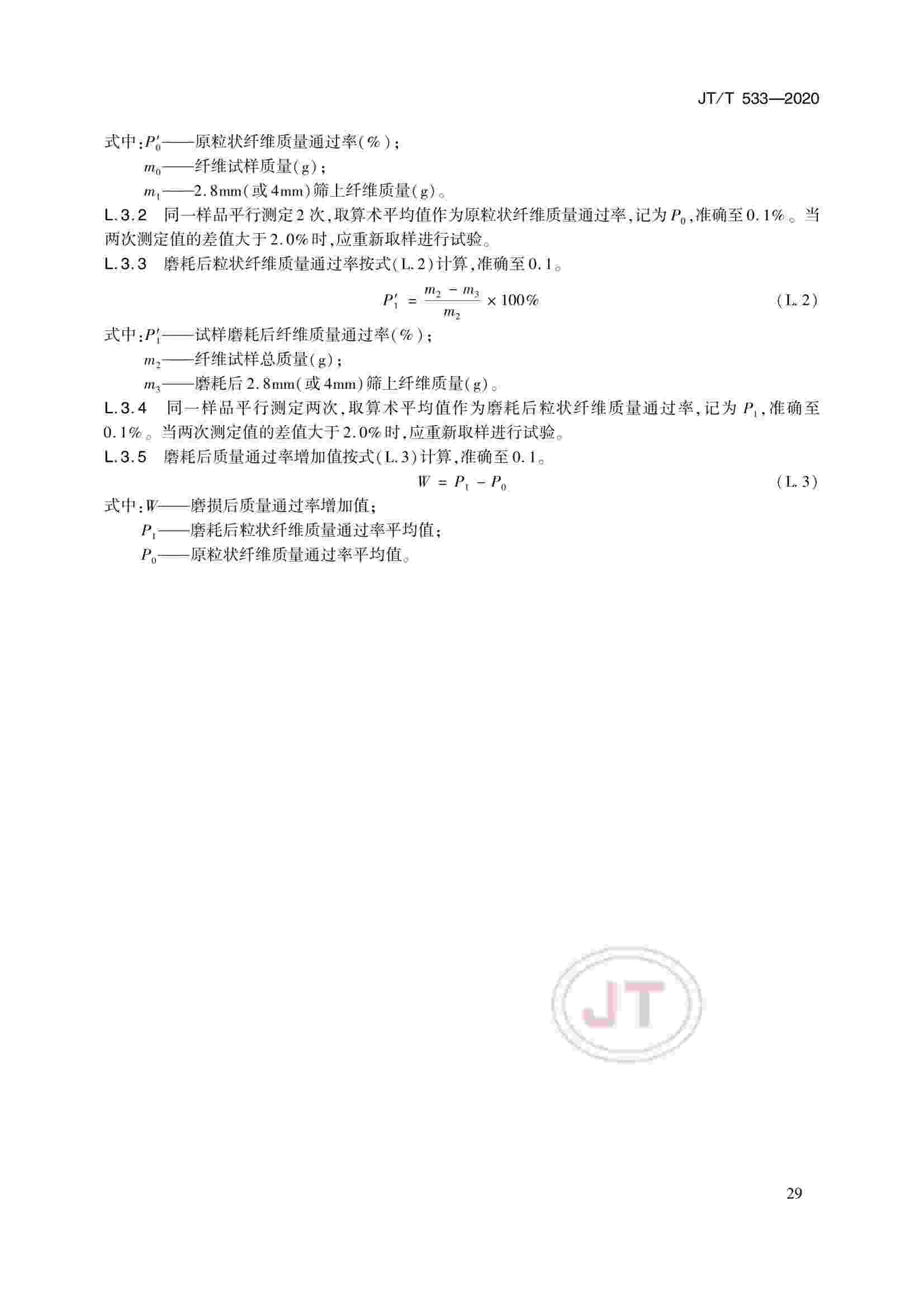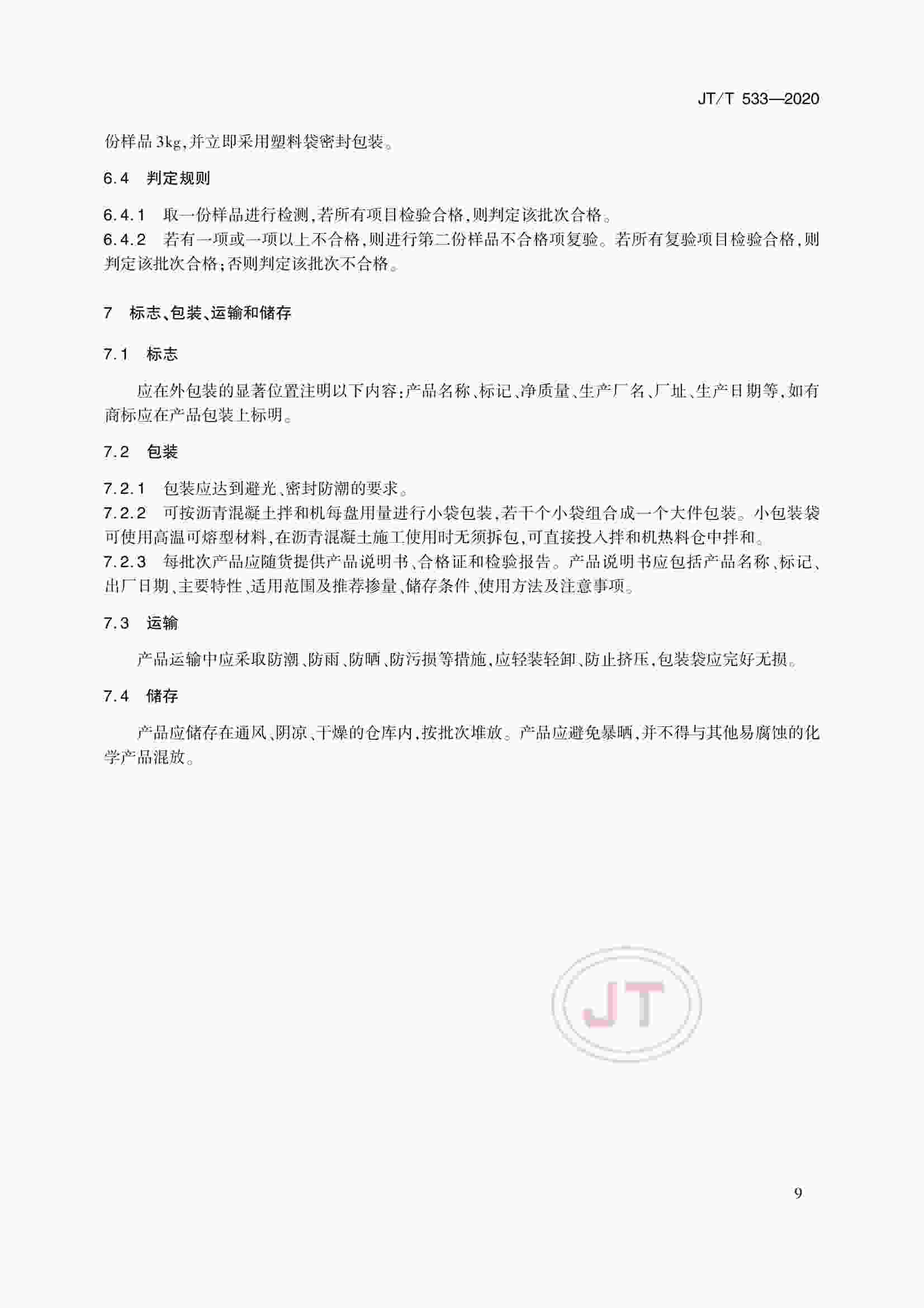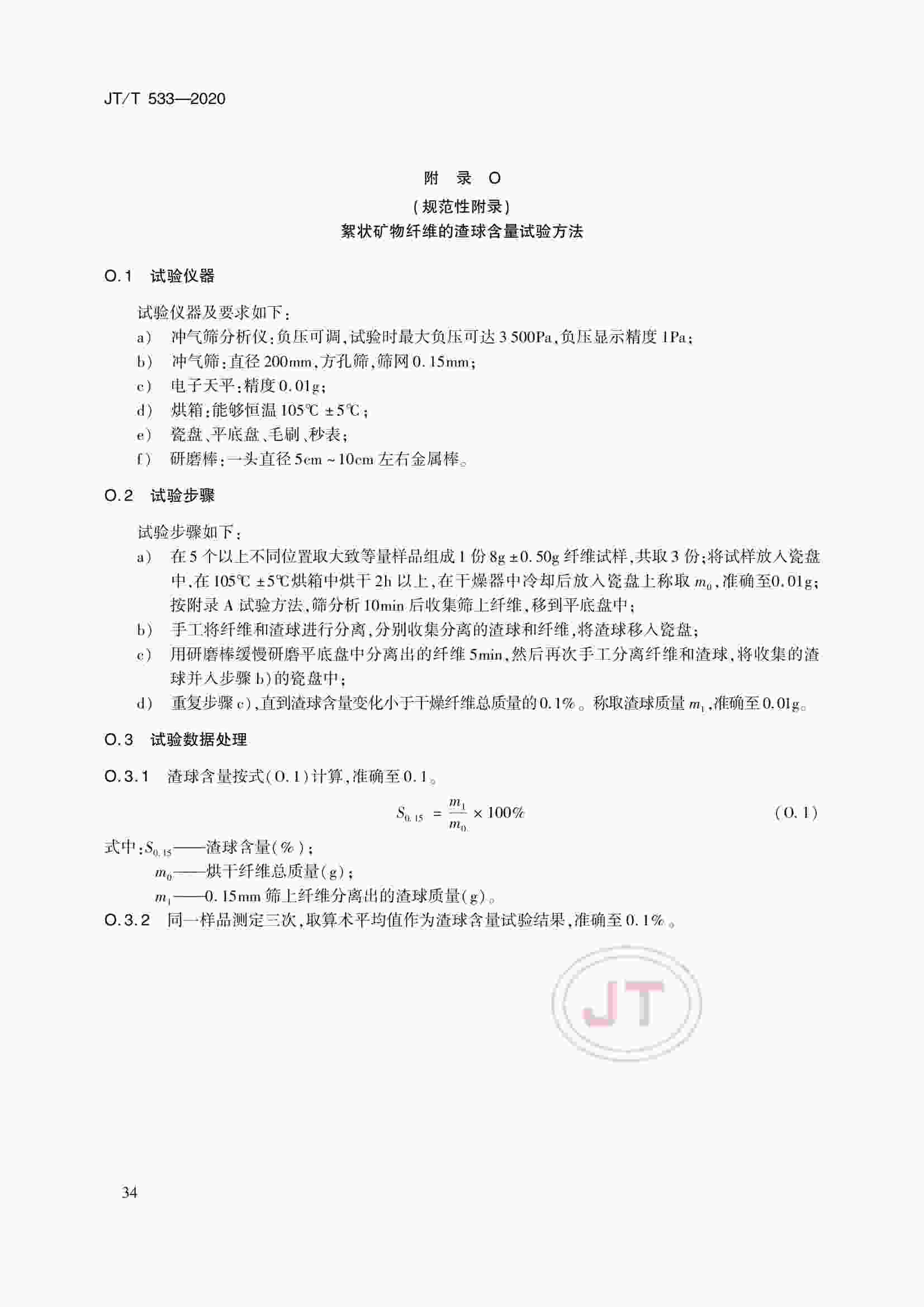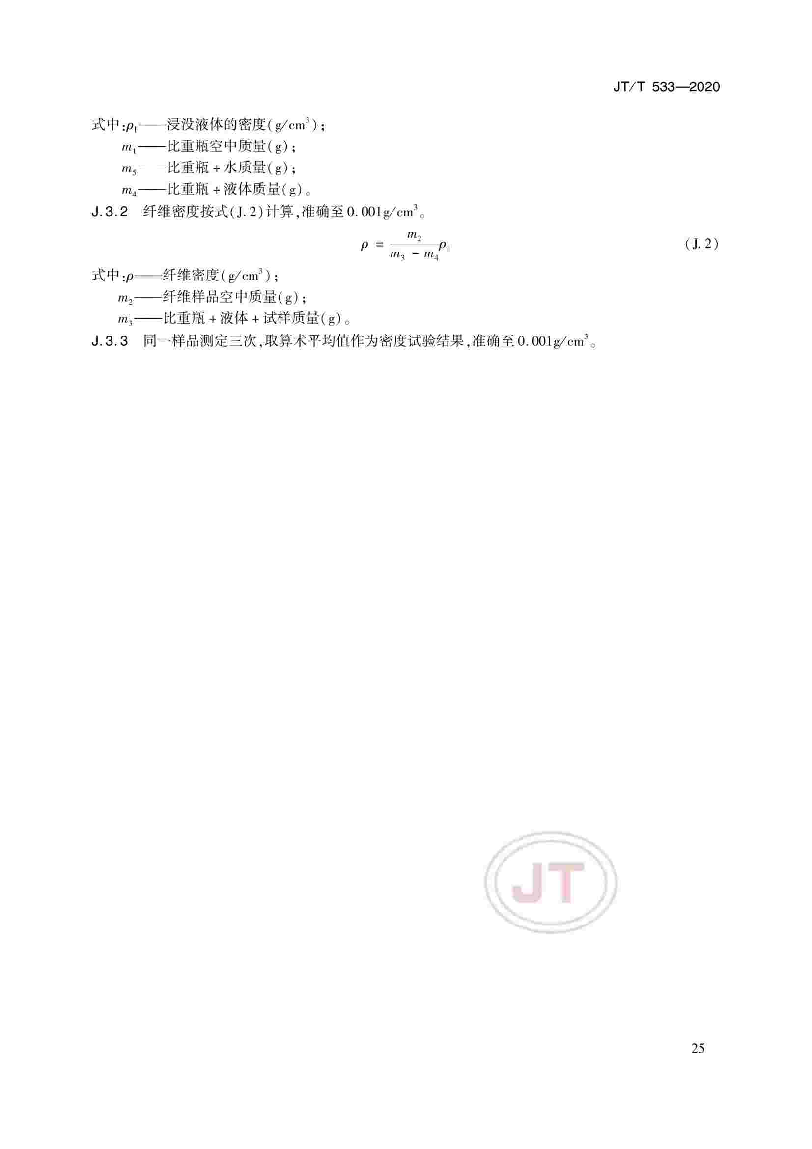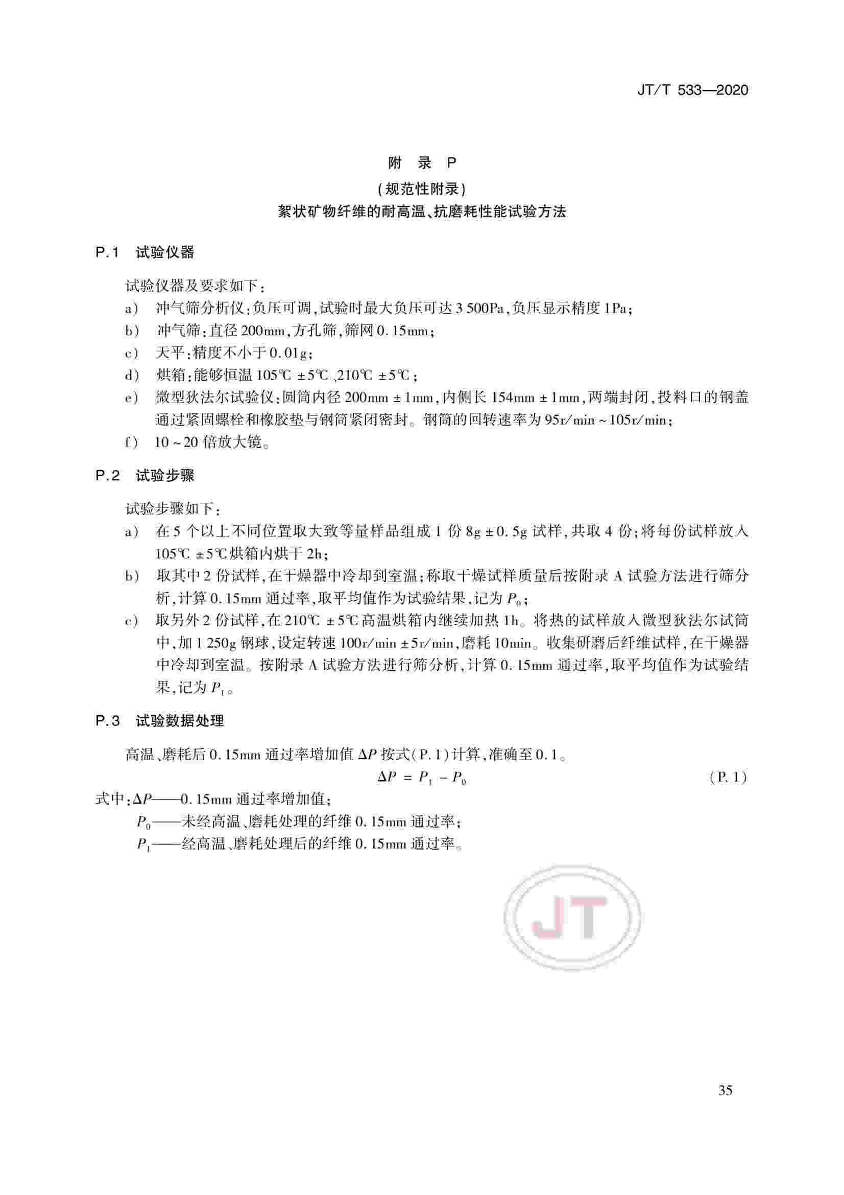 JTT 533-2020 瀝青路面用纖維