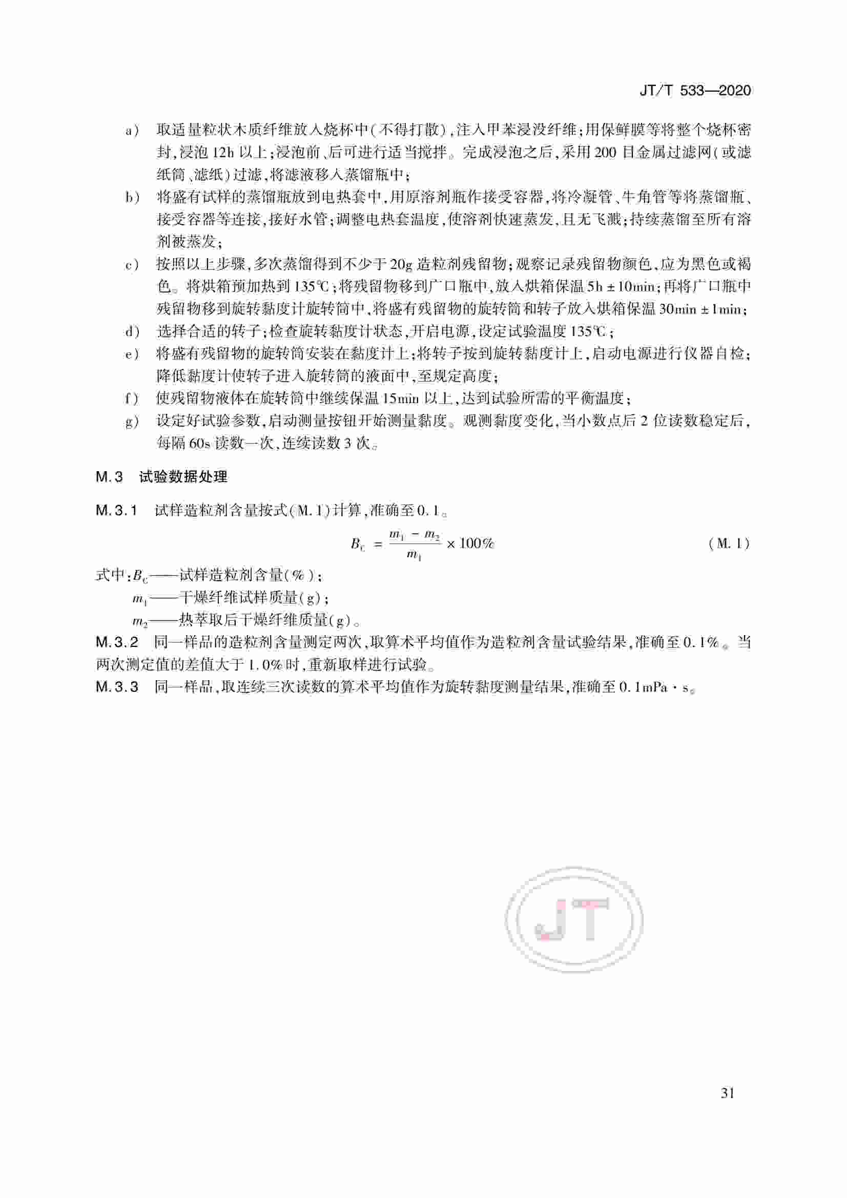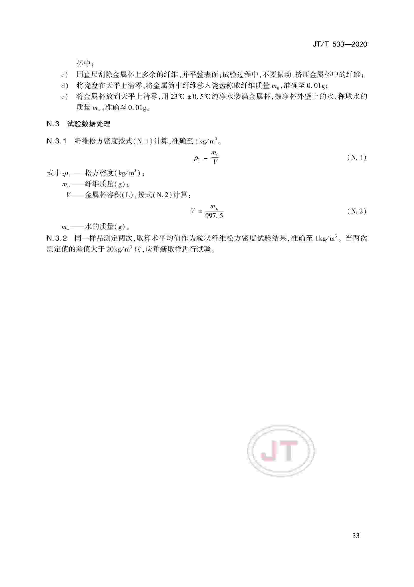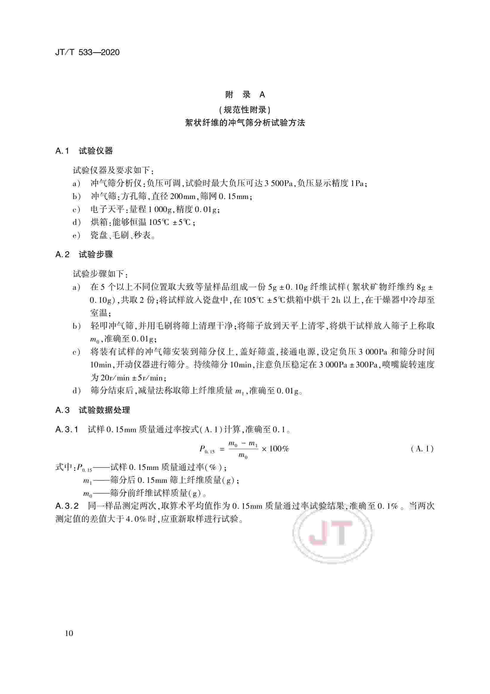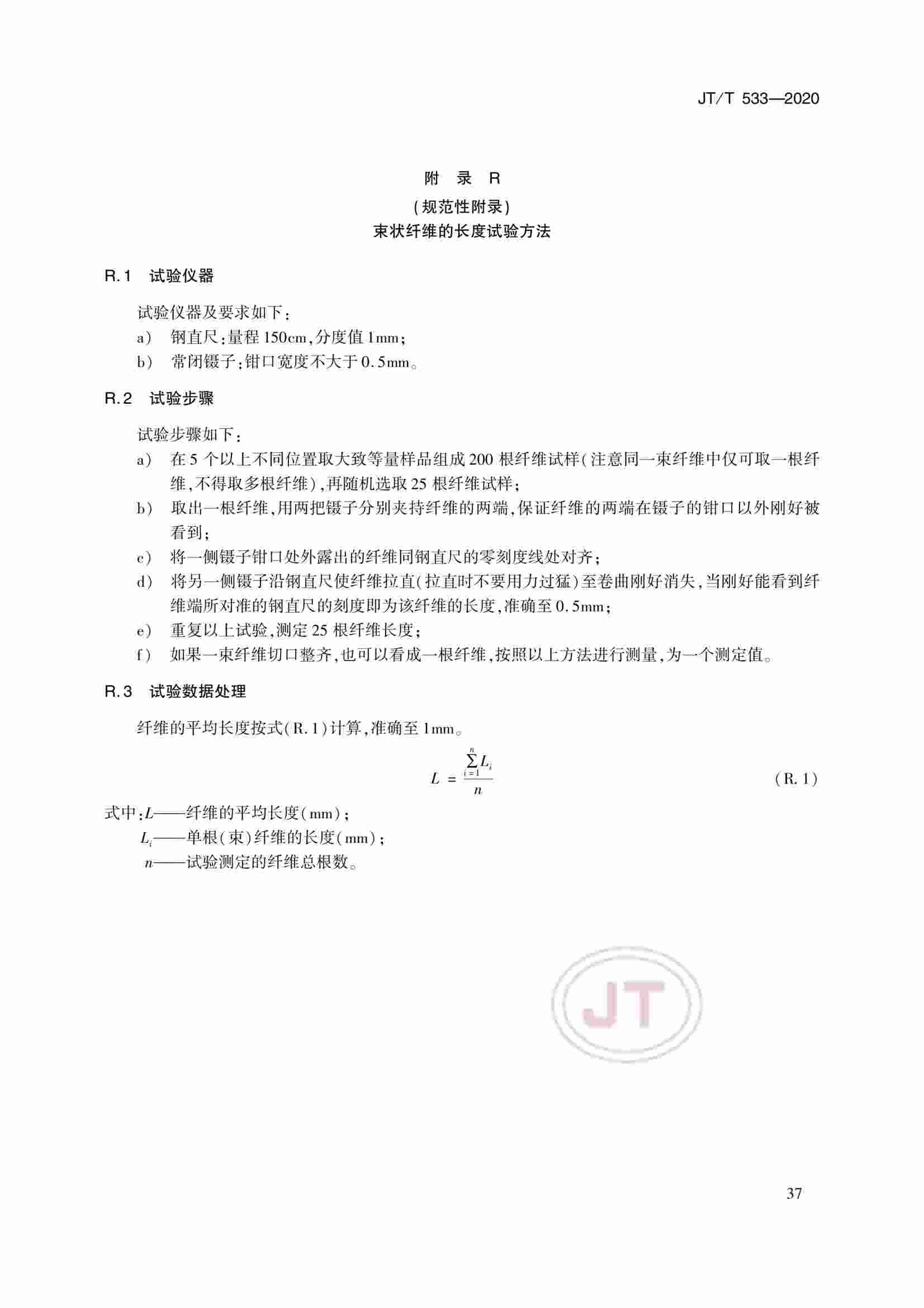 JTT 533-2020 瀝青路面用纖維