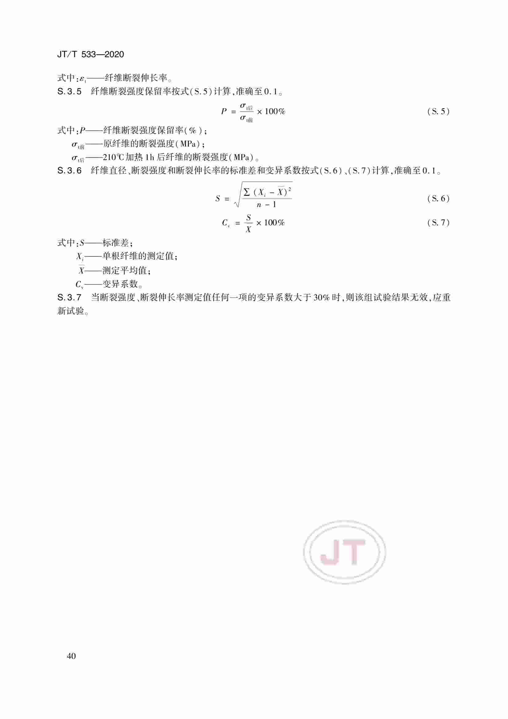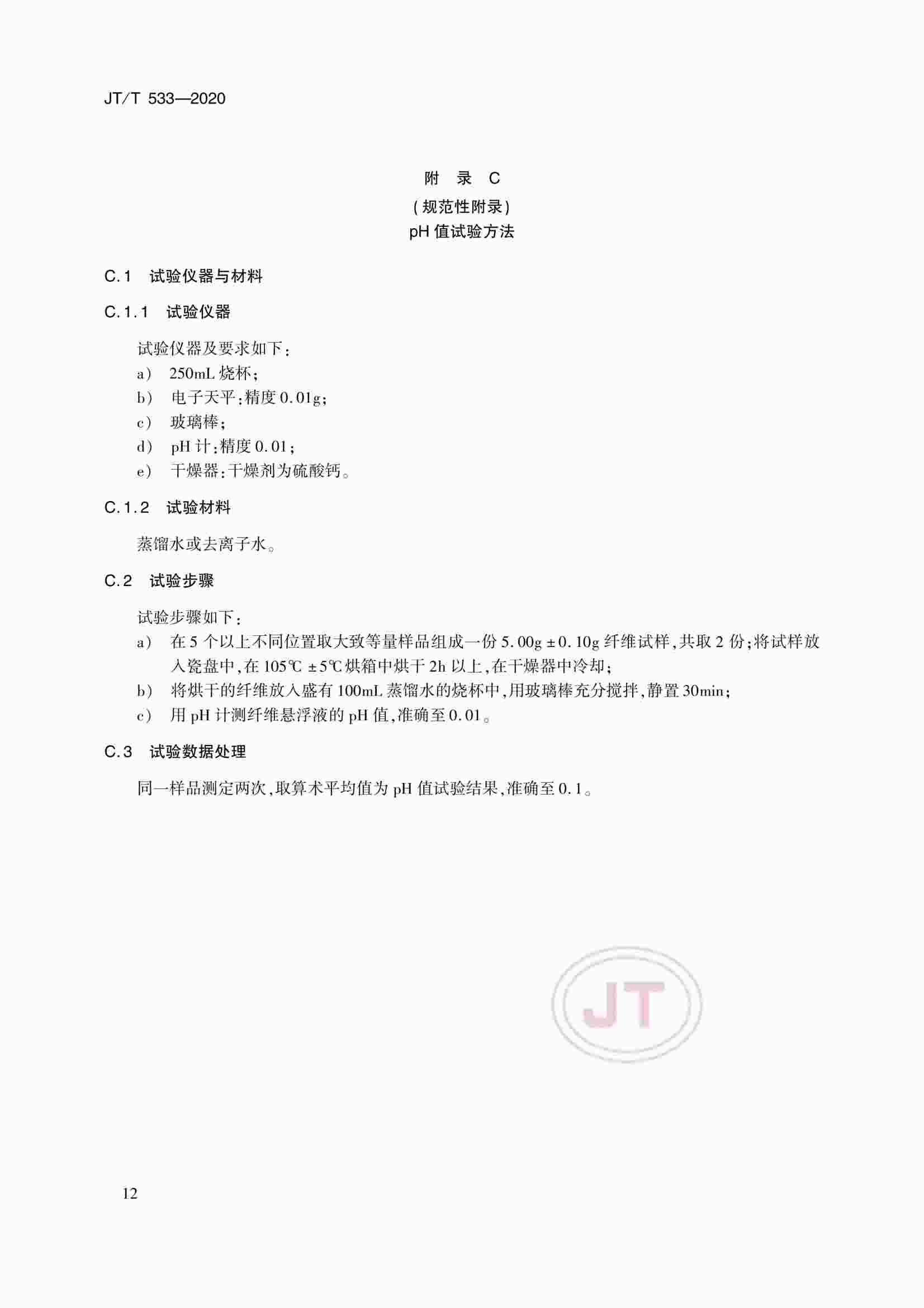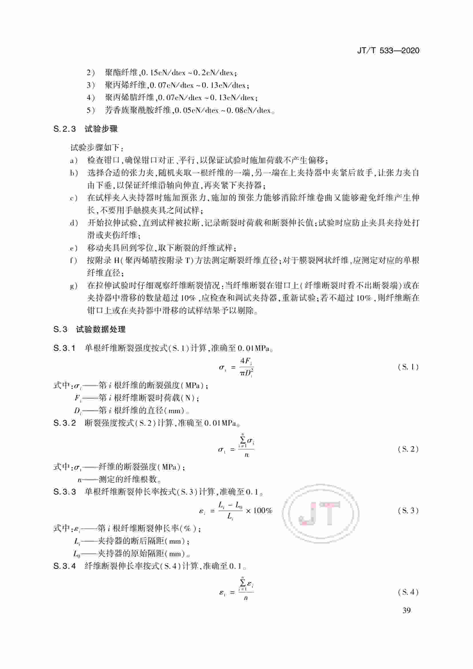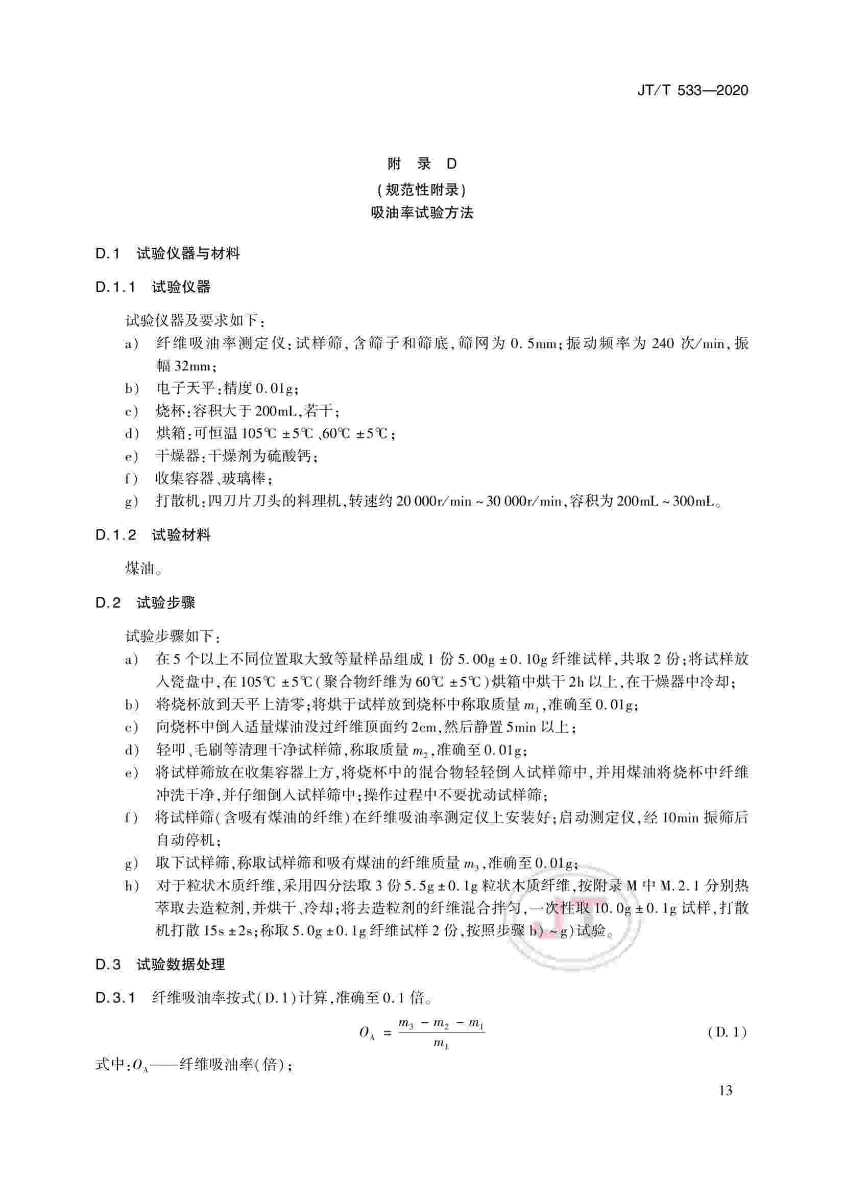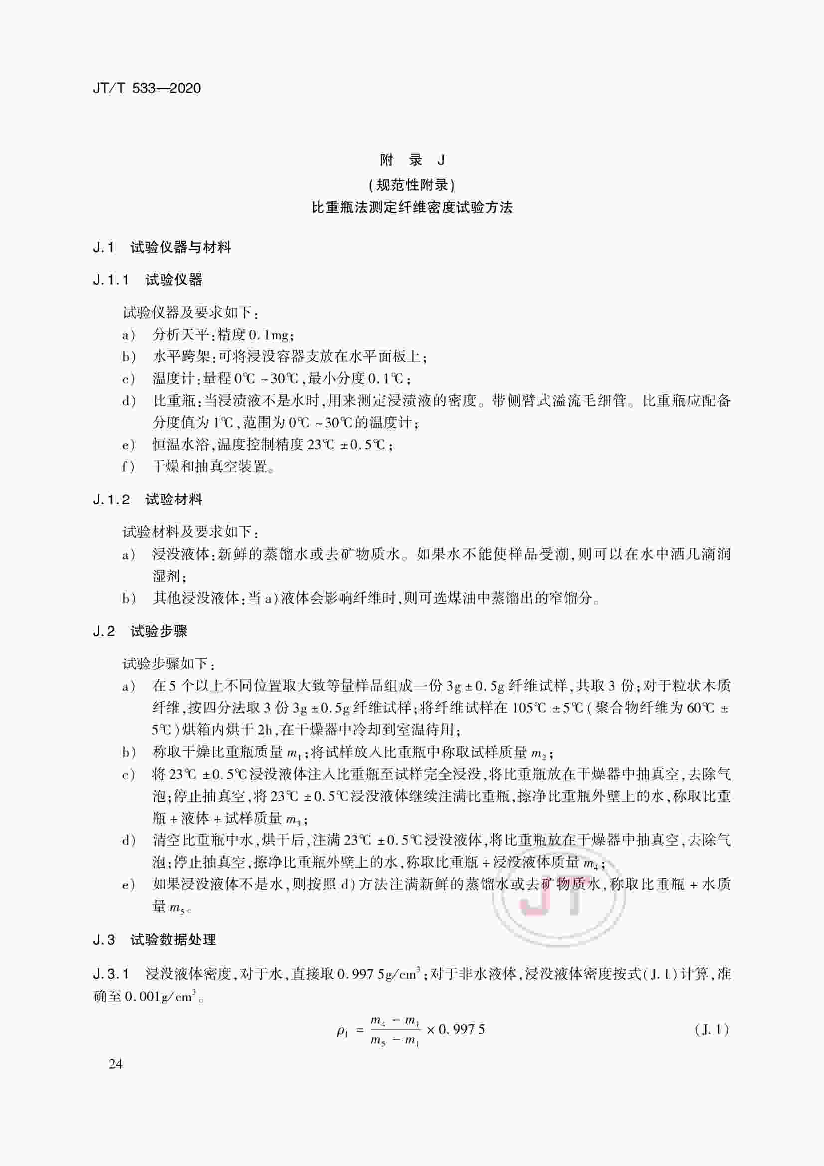 JTT 533-2020 瀝青路面用纖維