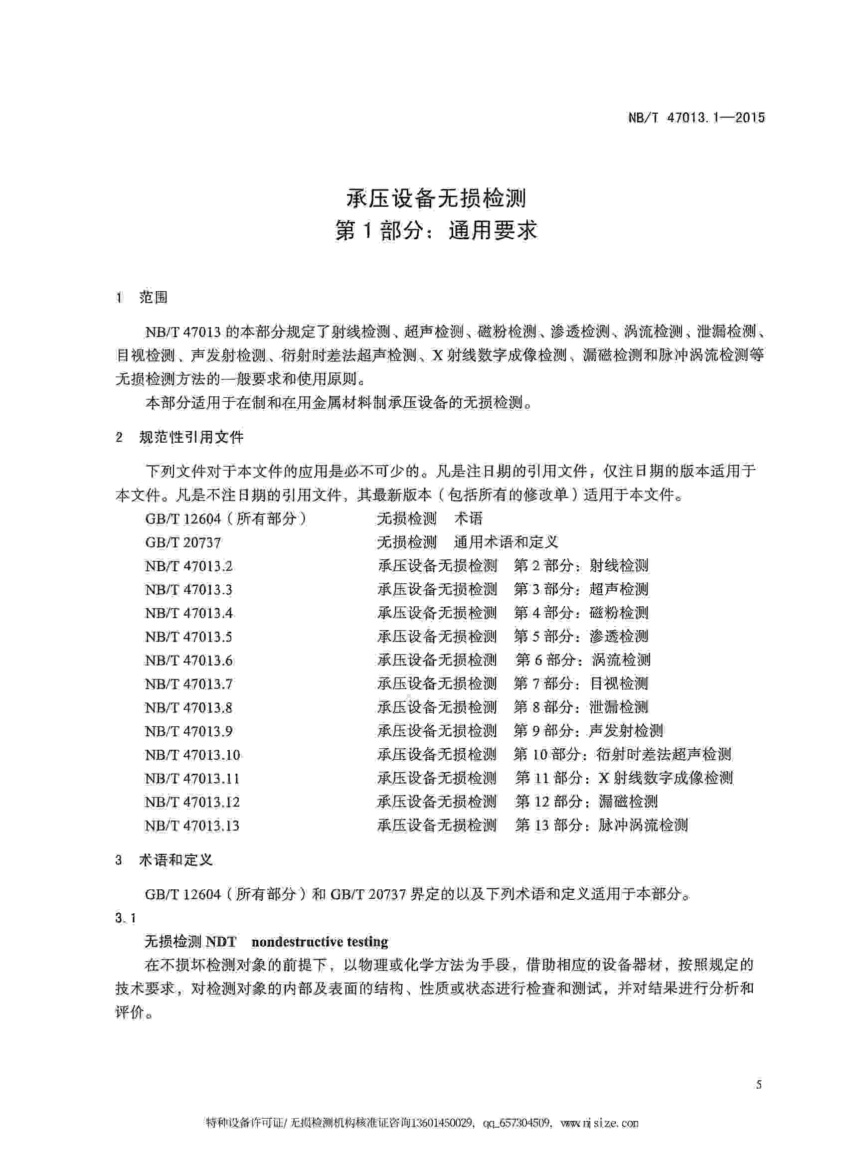 NB/T47013.1-2015 承壓設(shè)備無(wú)損檢測(cè) 第1部分:通用檢測(cè)