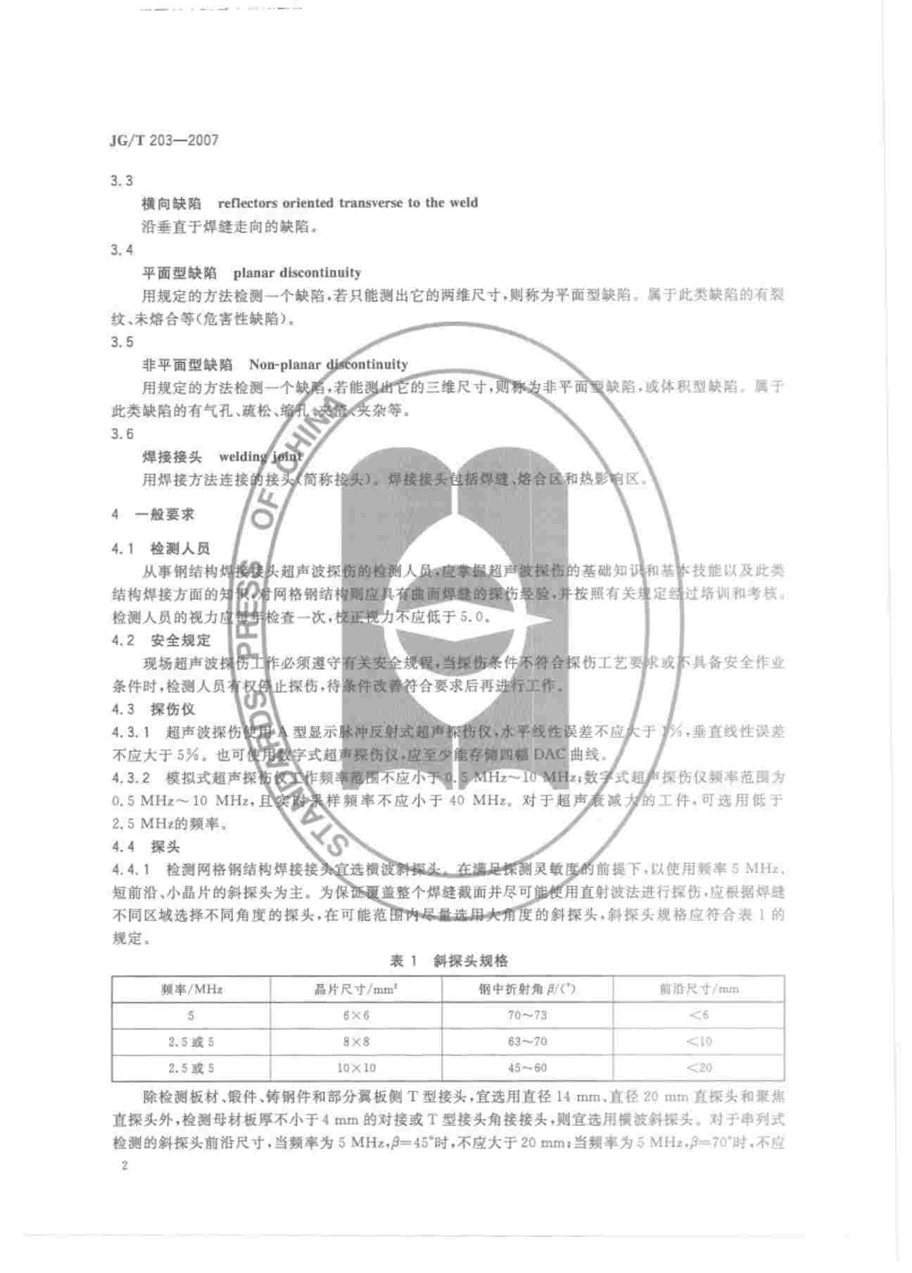 附錄d:JGT203-2007 鋼結(jié)構(gòu)超聲波探傷及質(zhì)量分級(jí)法