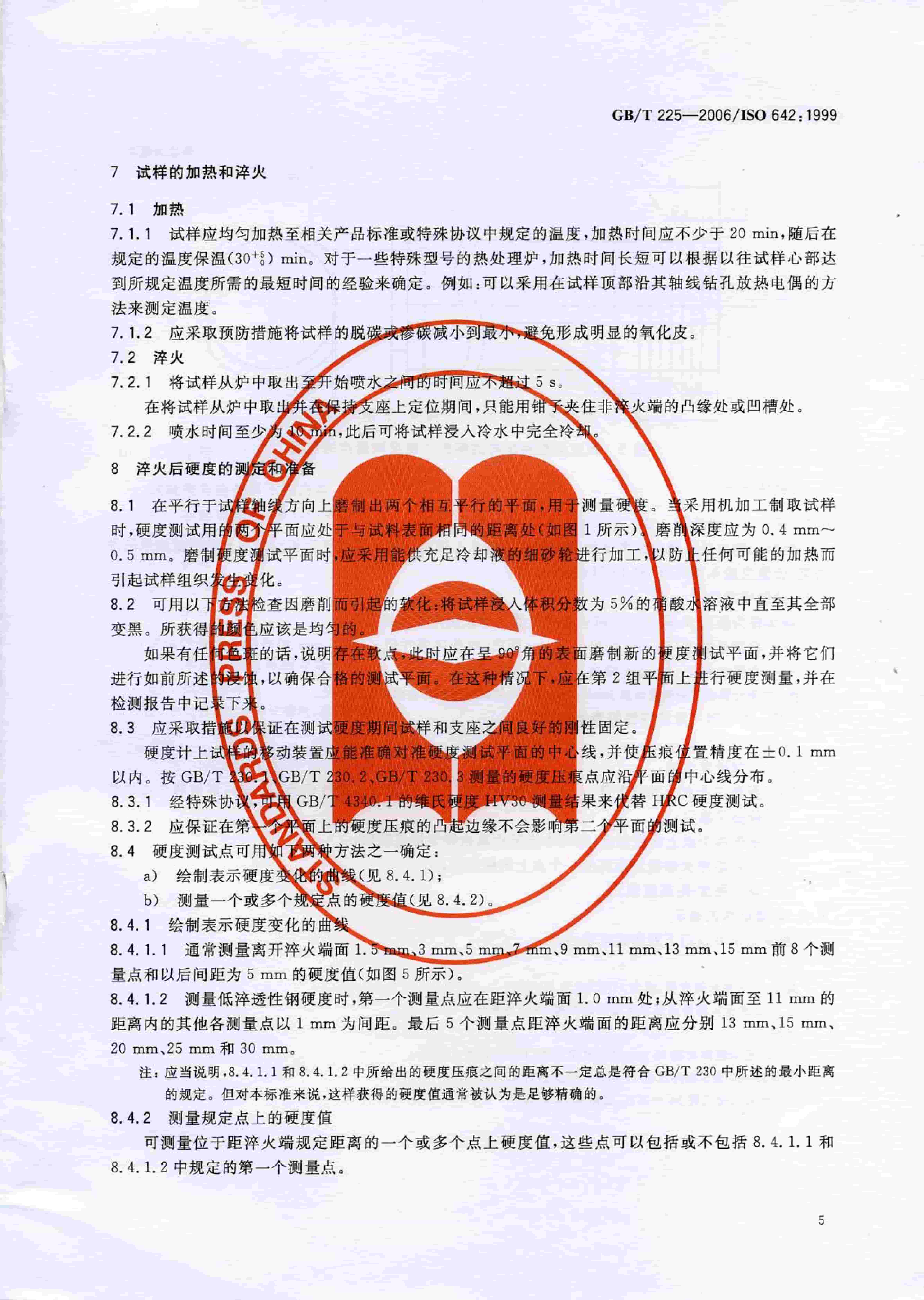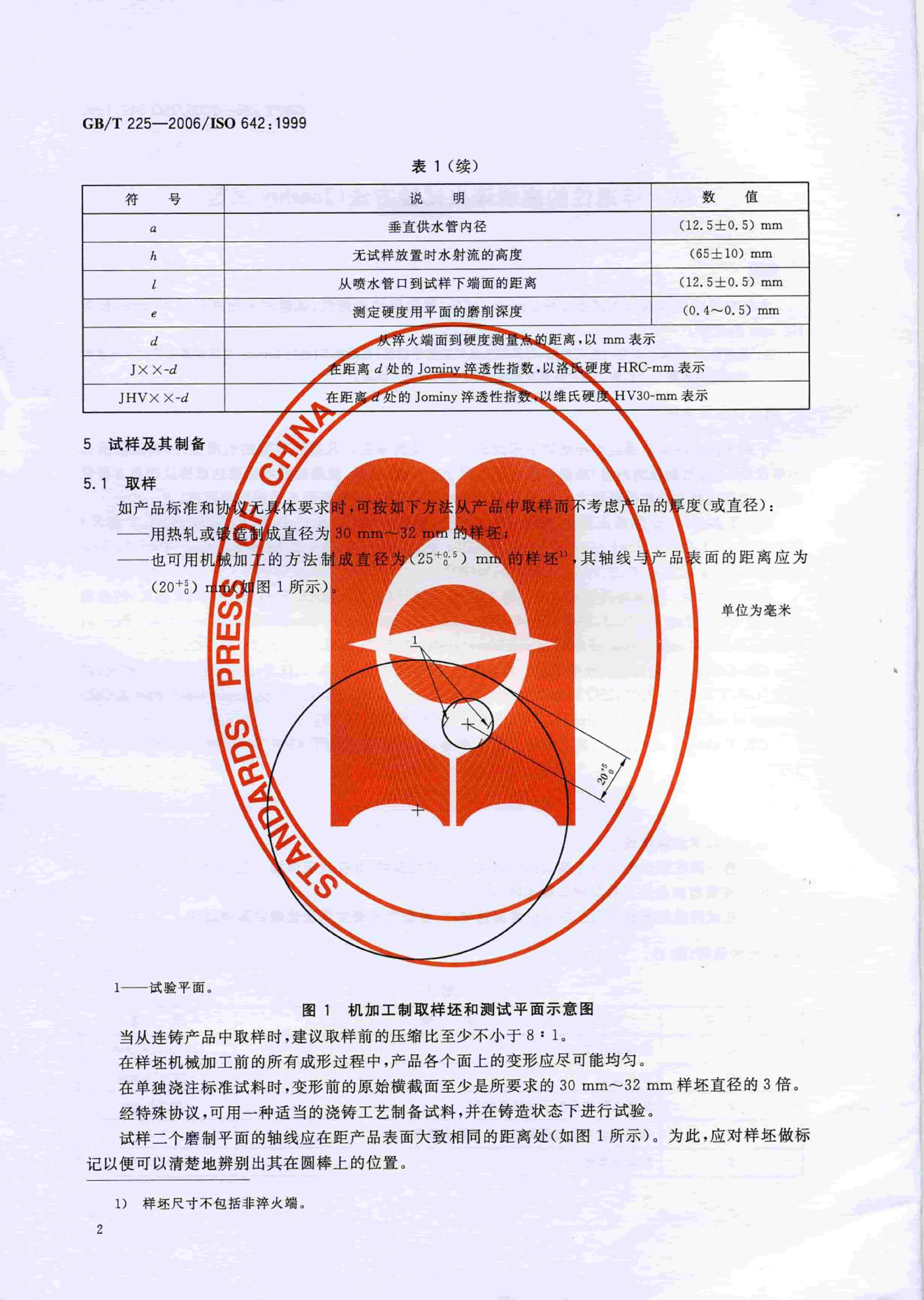 GBT 225-2006 鋼 淬透性的末端淬火試驗(yàn)方法(Jominy 試驗(yàn))