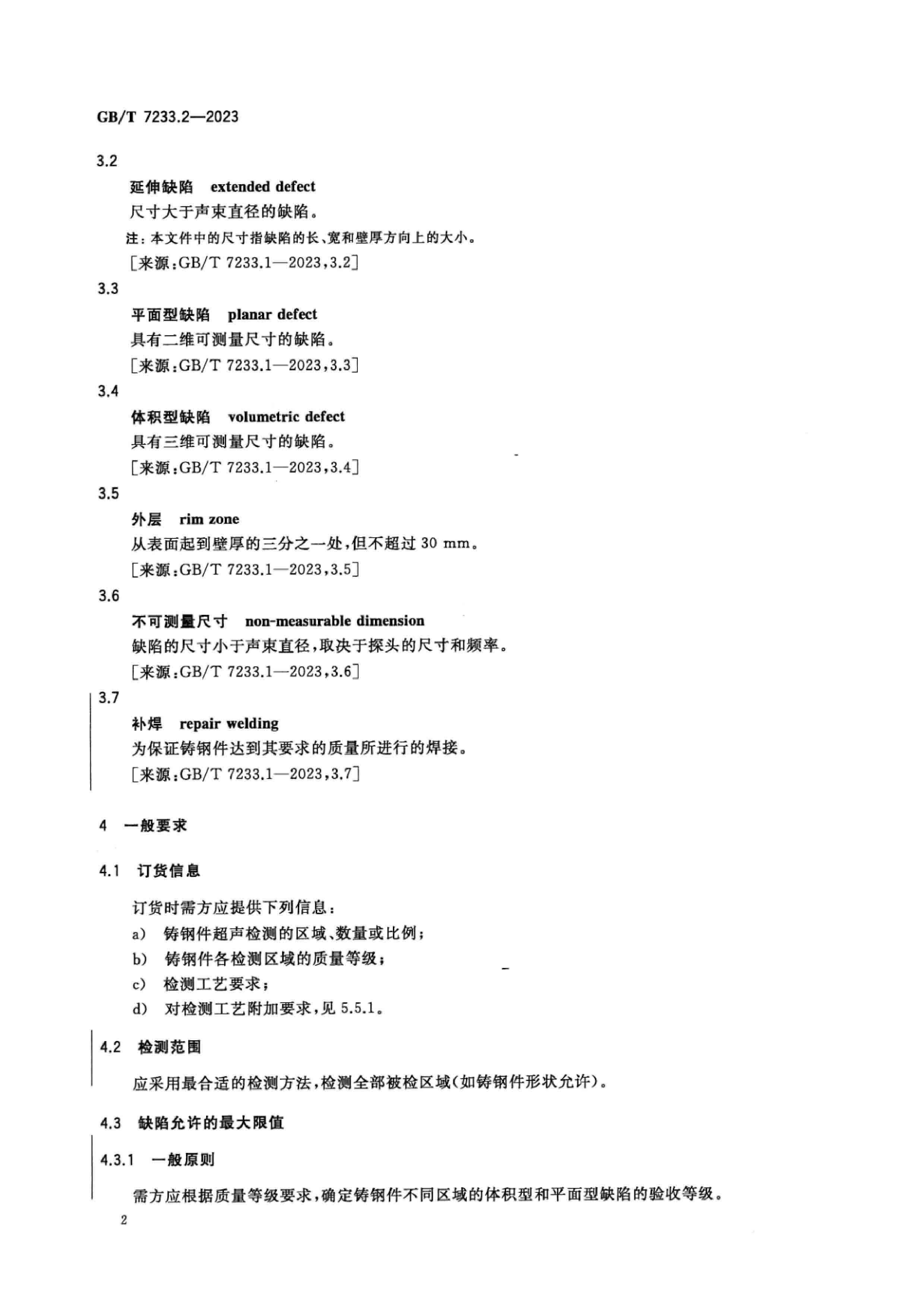 GBT 7233.2-2023 鑄鋼件 超聲檢測 第2部分:高承壓鑄鋼件